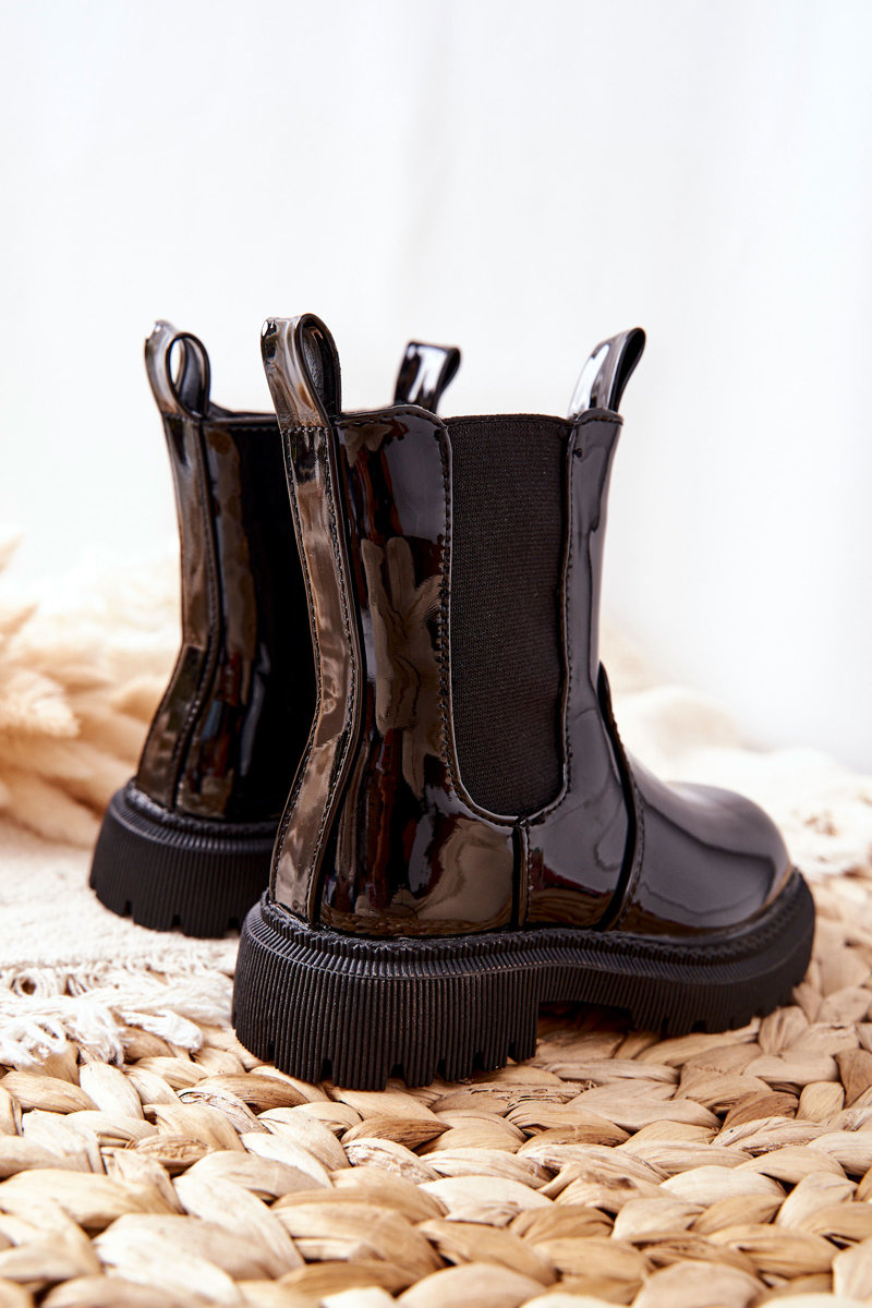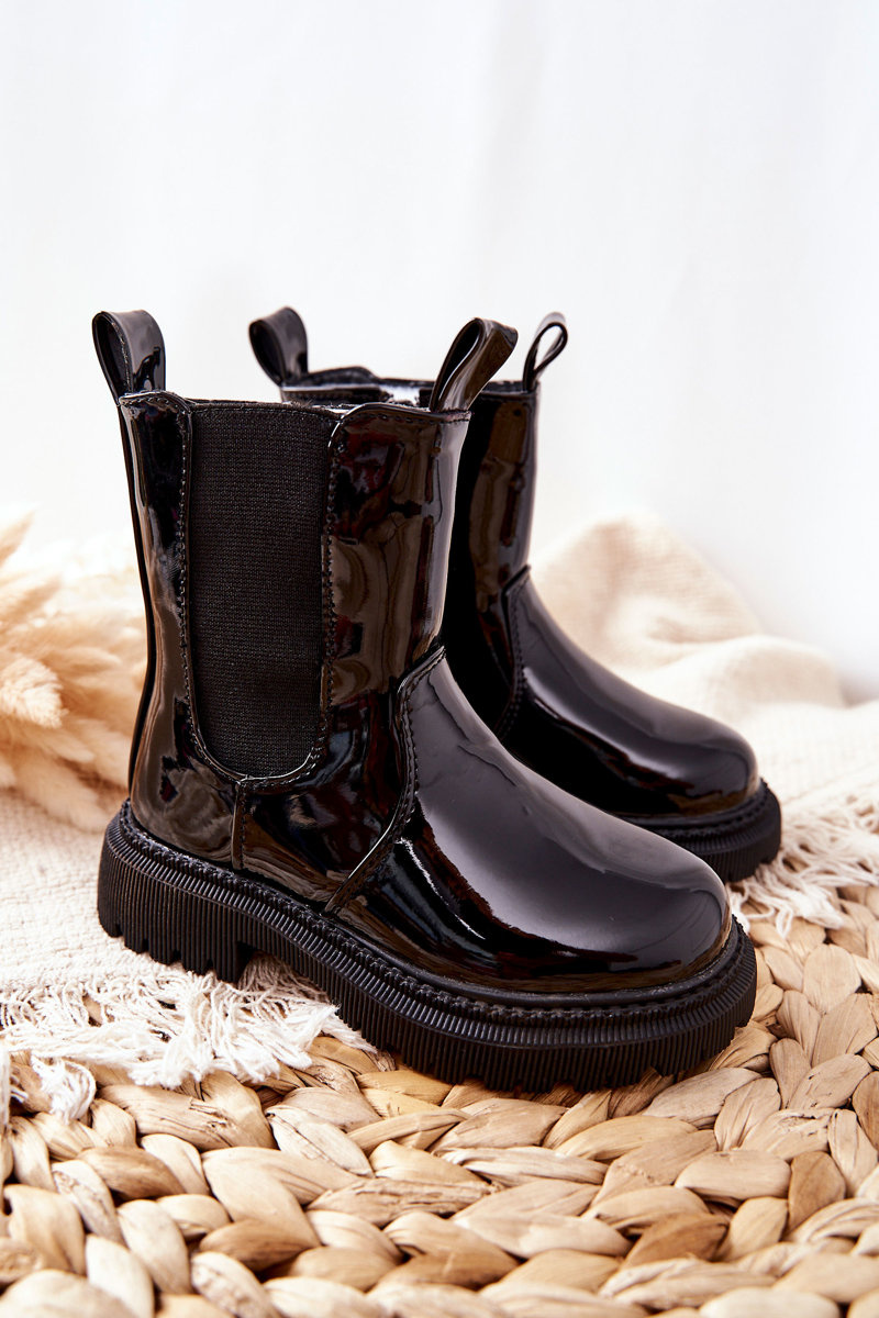 Dětské boty. Snadno se obléká díky zipu na boku. Vyrobeno z lakované ekologické kůže. Zahřáté dekou na boty. Při výběru velikosti použijte tabulku velikostí.
