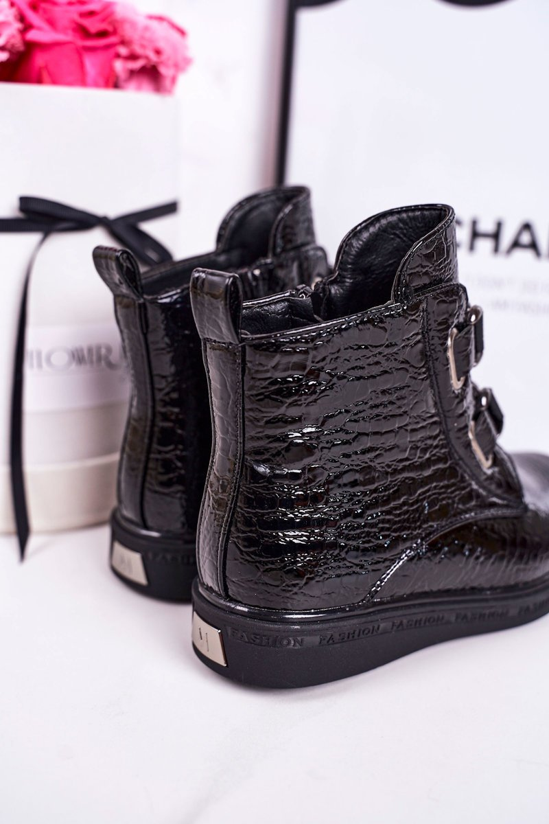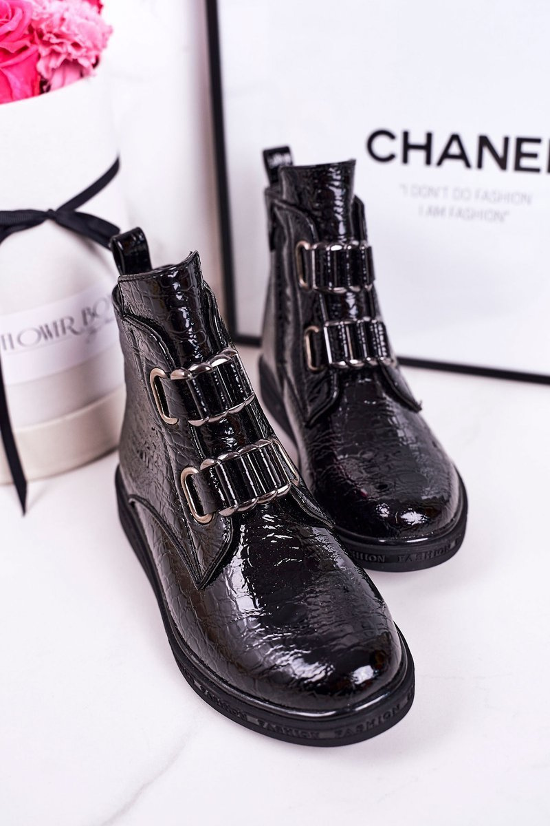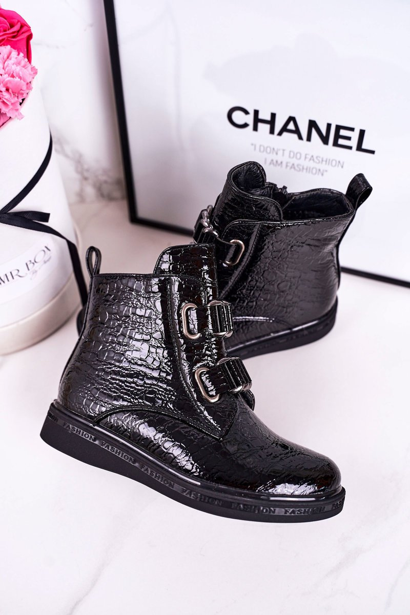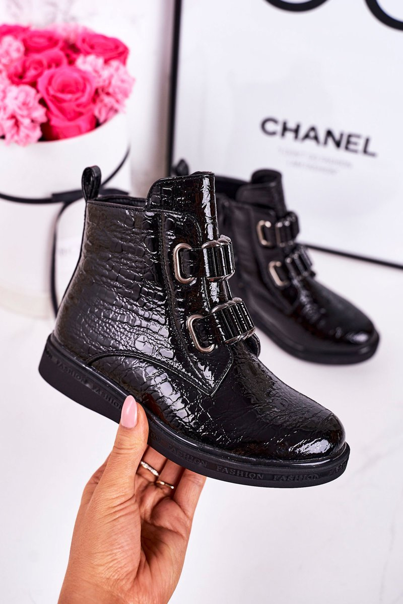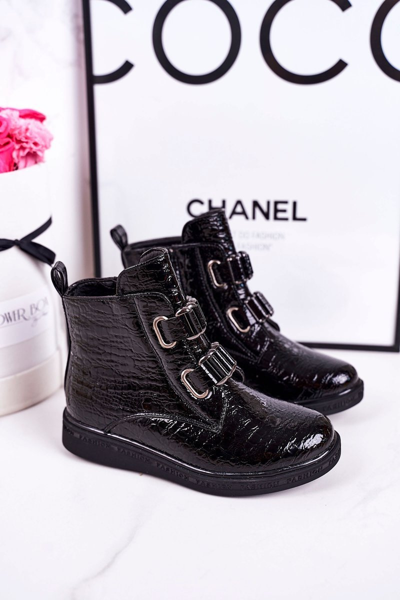 Dětské Izolované Boty Lakované Černé Zvířecí Vzor Maya