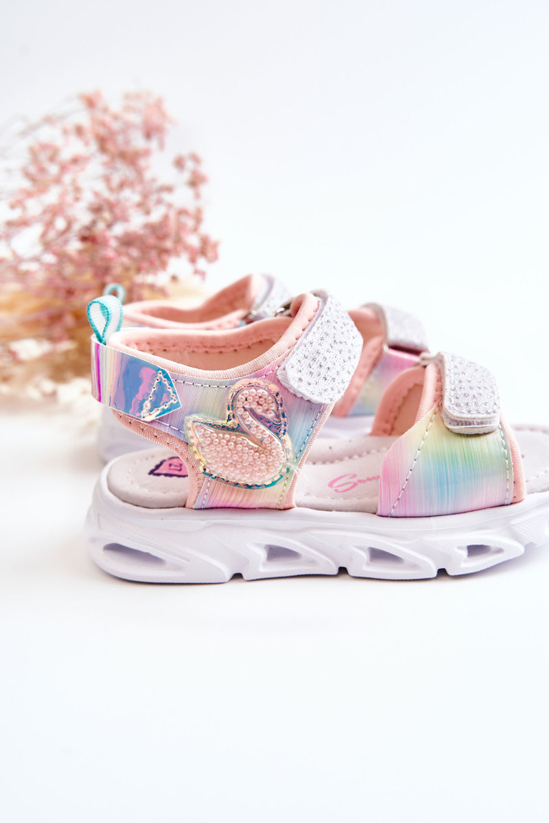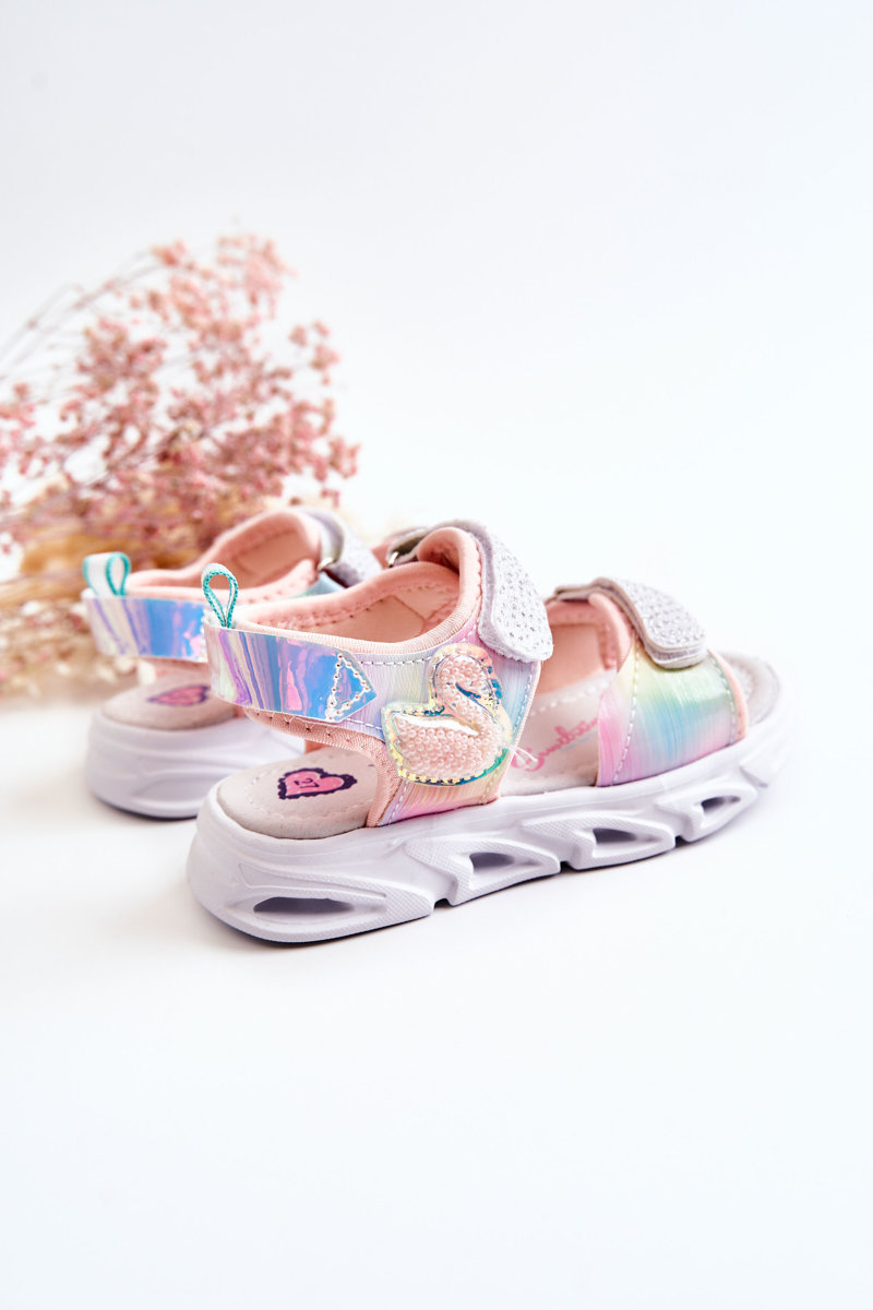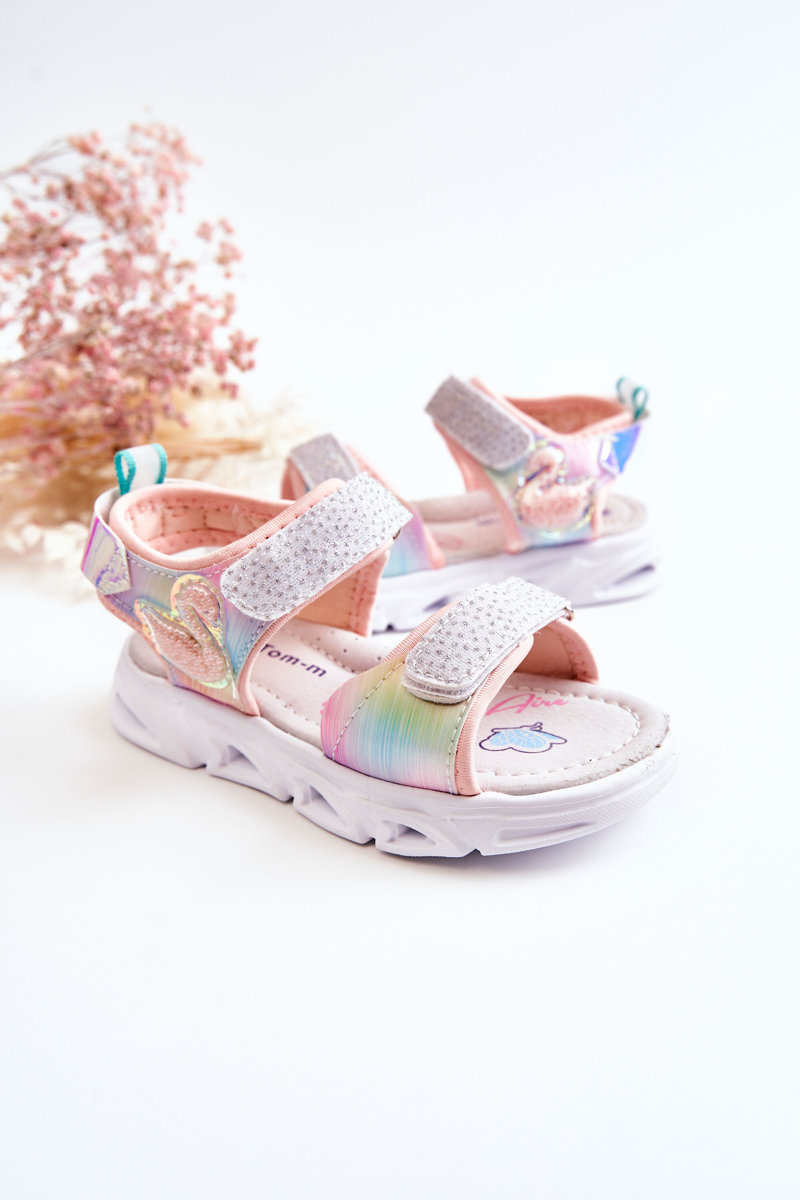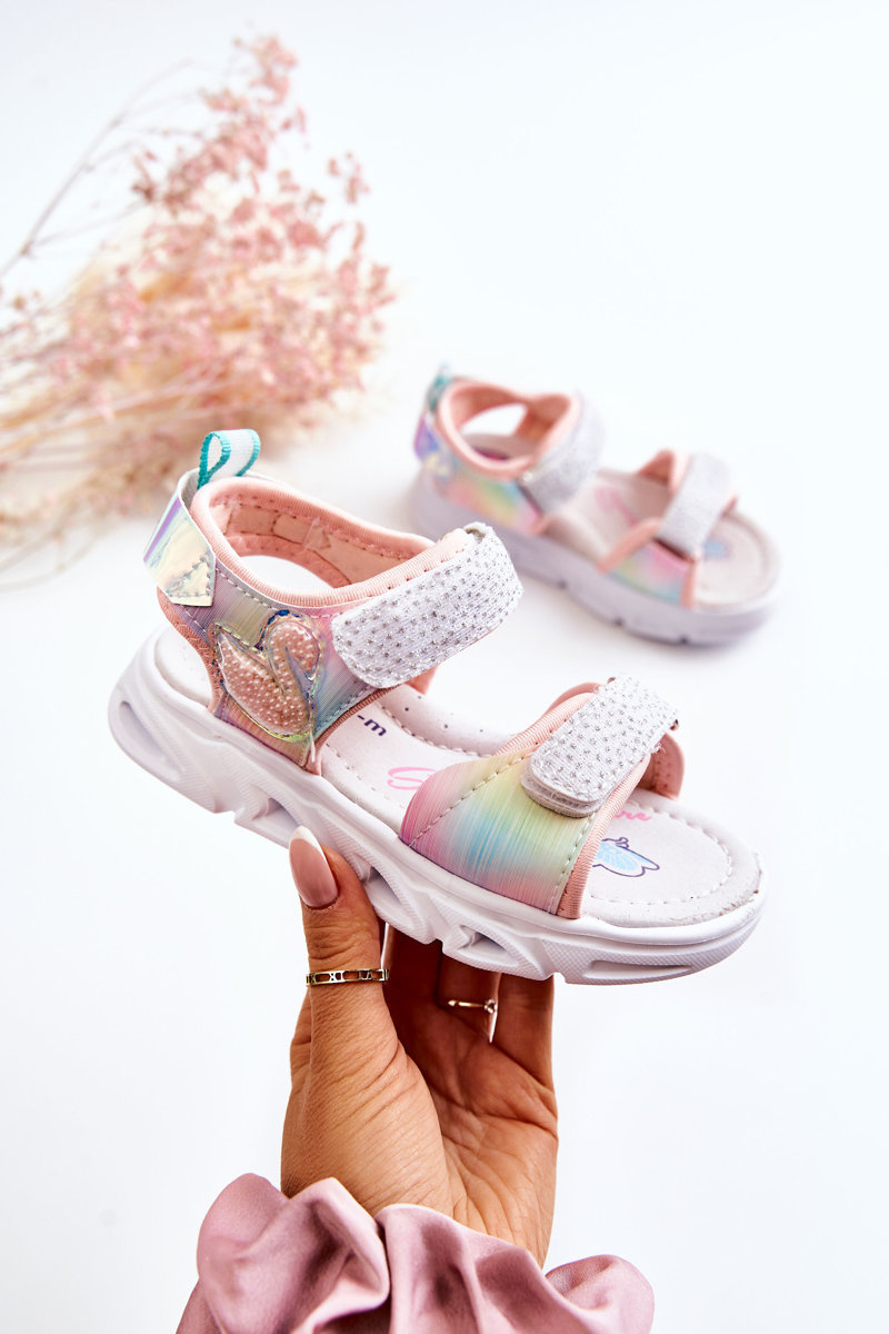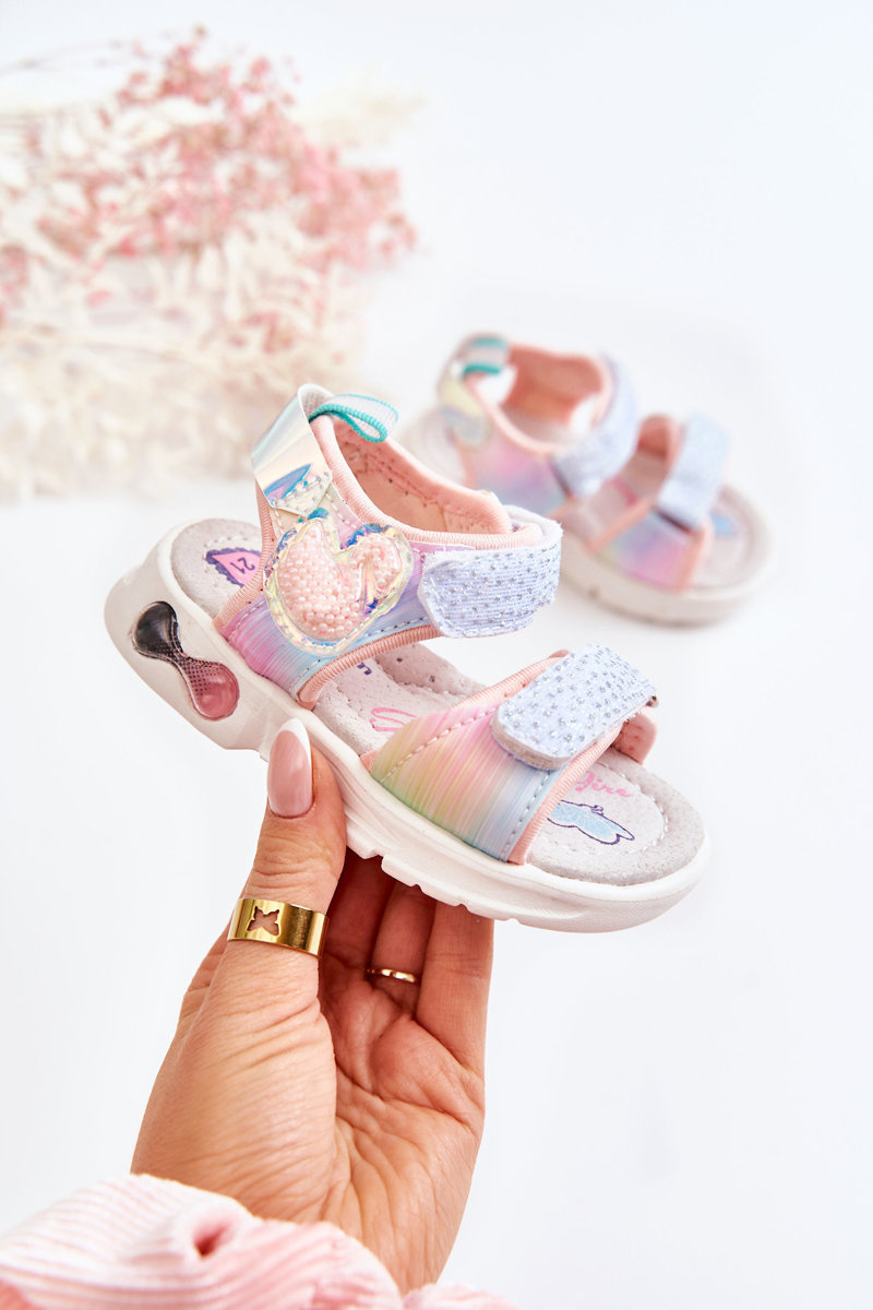 Krásné dětské sandály vyrobené z textilu a plastu. Na špičkách a kotnících mají suchý zip, který usnadňuje obouvání. Boty mají lesklý suchý zip. Na straně svršku je roztomilý prvek v podobě mazlíčka, který jistě osloví nejednoho malého princeznu! Měkká, profilovaná stélka zajišťuje pohodlí při používání. Plastová podrážka. Sandály velikosti 21-26 mají jinou podrážku než velikost 27-32. Při výběru velikosti použijte tabulku velikostí.