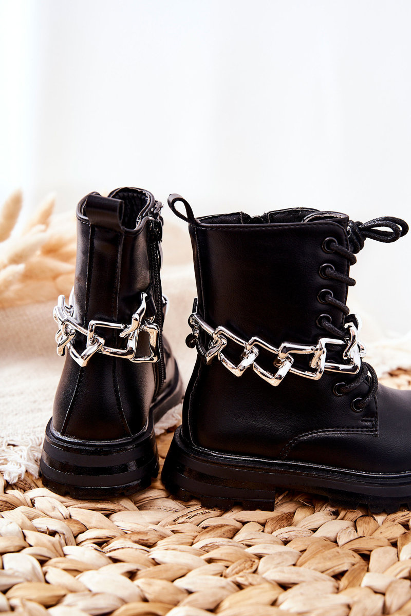Dětské Kotníkové Boty S řetízkem Černé Moci