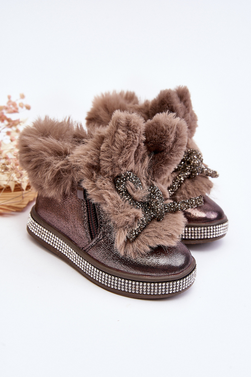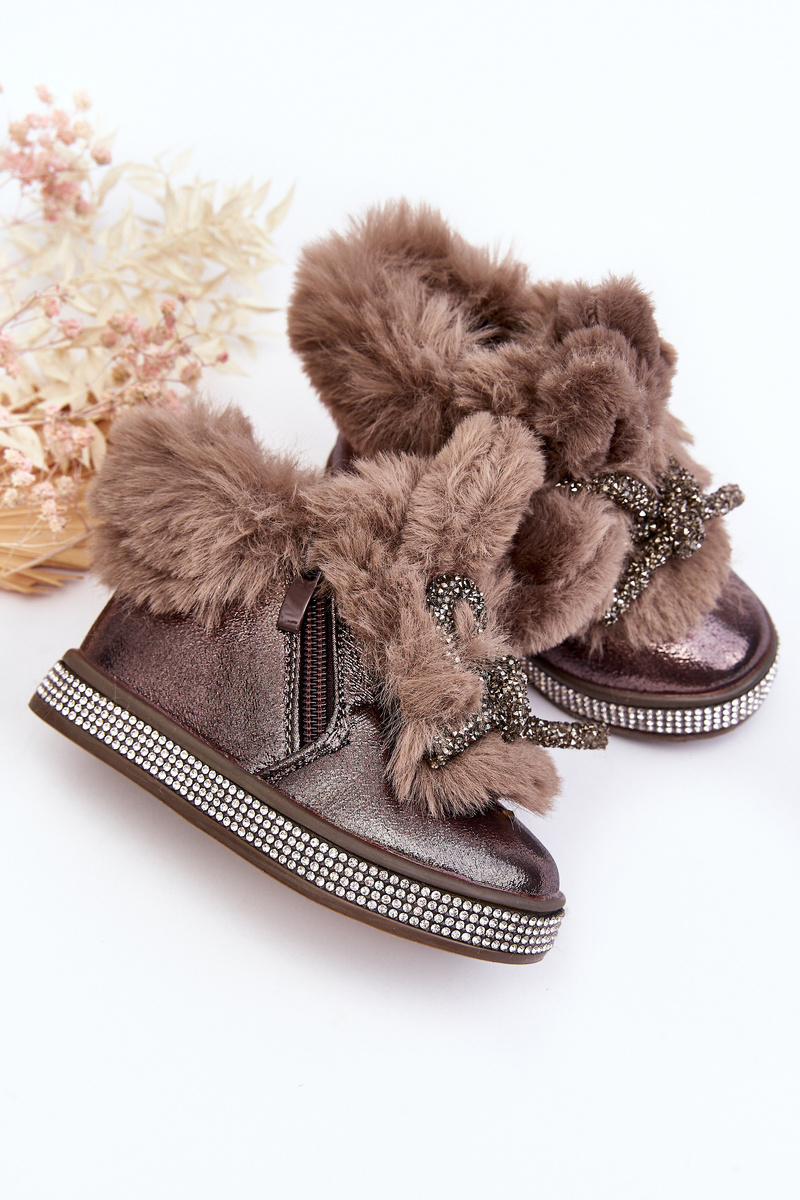 Dětské kozačky na zip s kožešinkou hnědé Hanija