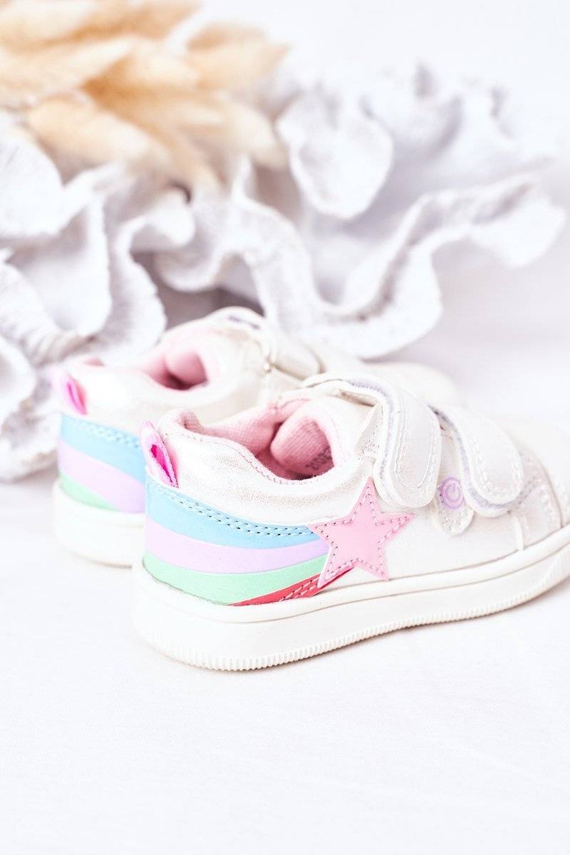 Dětské Kožené Sportovní Obuv S Duhou Bílé Jasmine