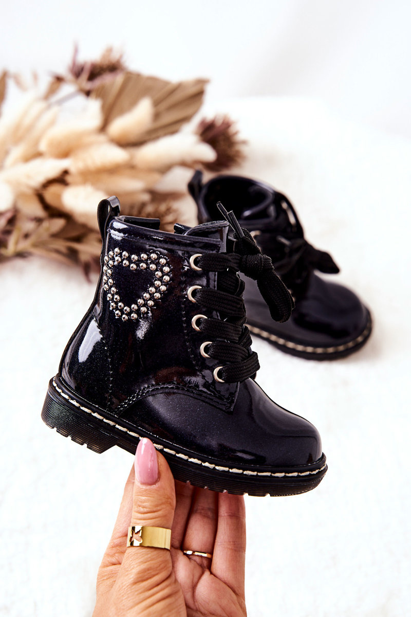 Nádherné boty s třpytivým efektem a srdcem z cvočků potěší nejednu milovnici módy! Pohodlné a klasické šněrování zajišťuje přizpůsobení noze, zatímco zip na boku usnadňuje obouvání. Vyrobeno z lakované ekokůže. Nezapomeňte si prohlédnout celou naši nabídku dětských bot. Při výběru velikosti se prosím řiďte tabulkou velikostí