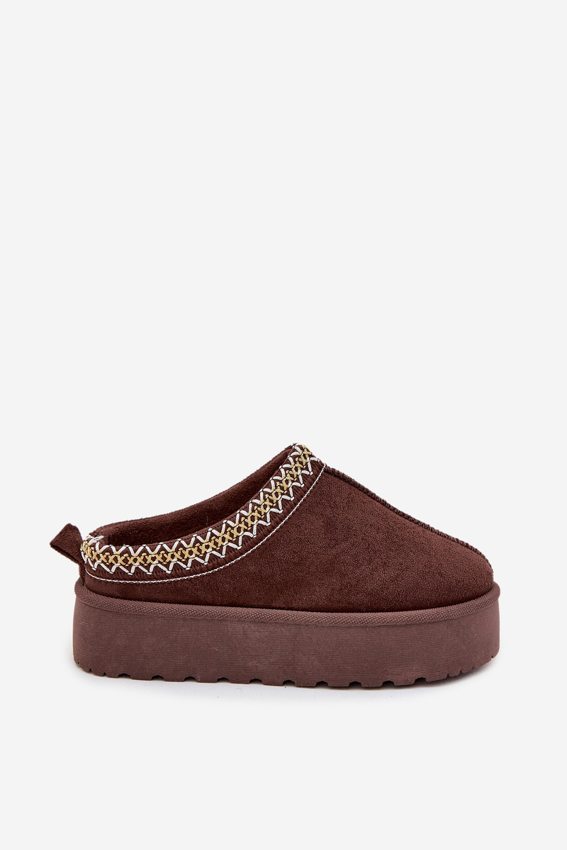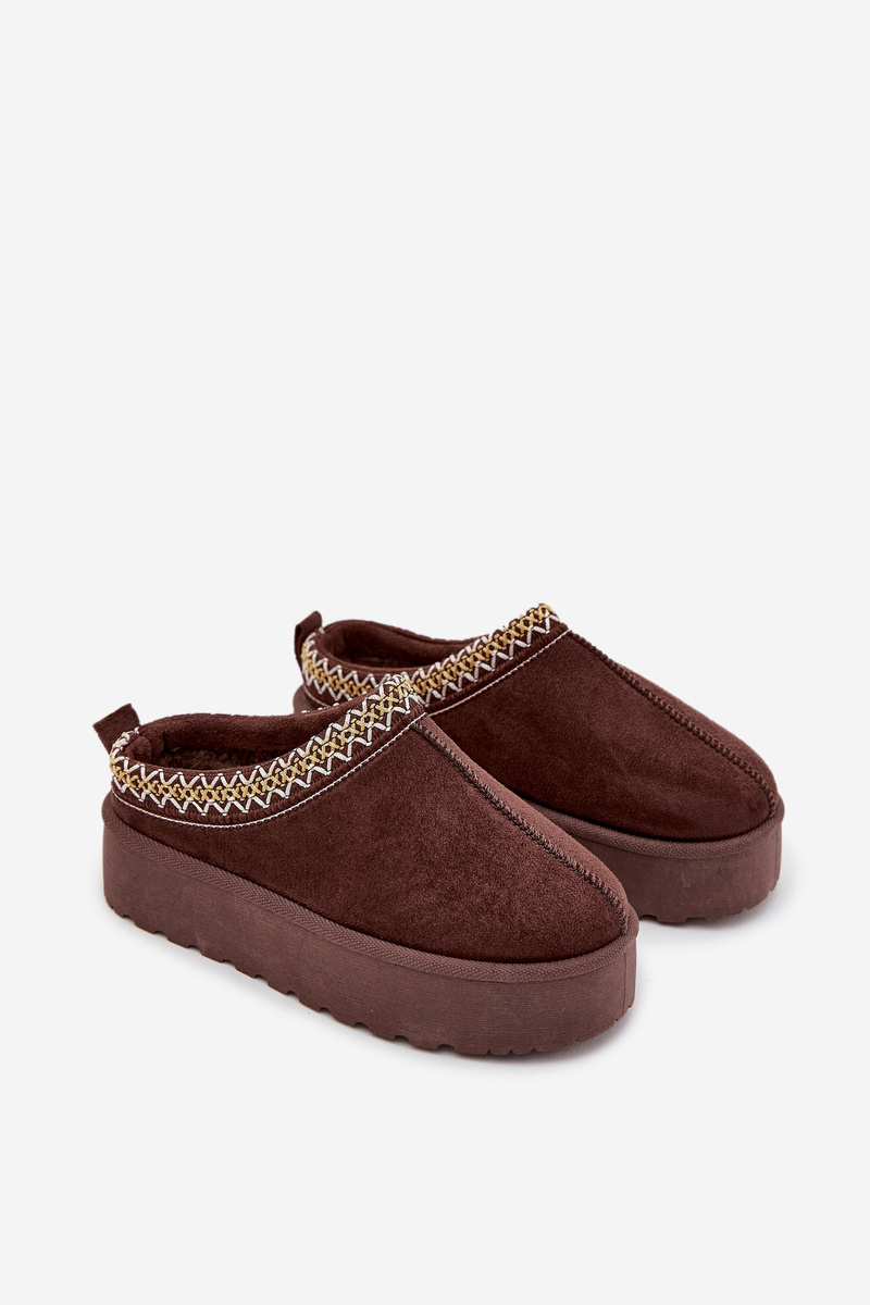 Dětské mládežnické sněhule s výšivkou na platformě čokoládové Jolisse