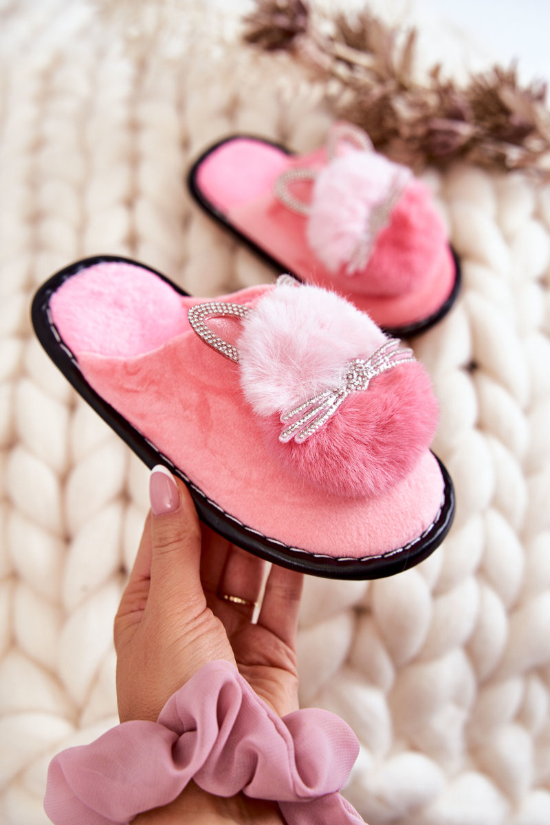 Dětské pantofle s koťátkem a kamínky Světle růžová Carliss