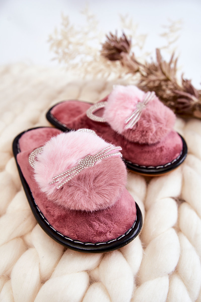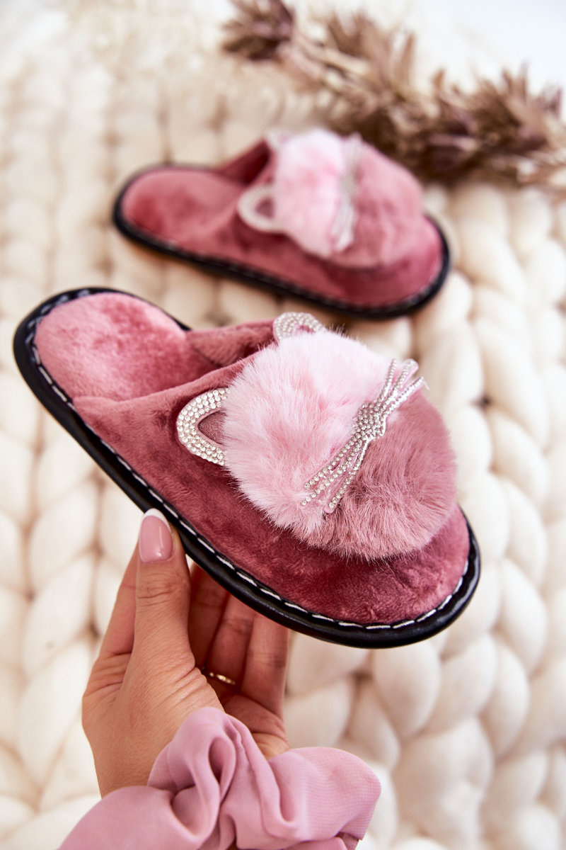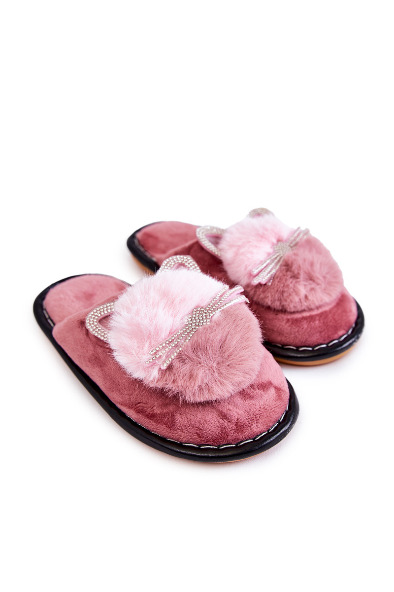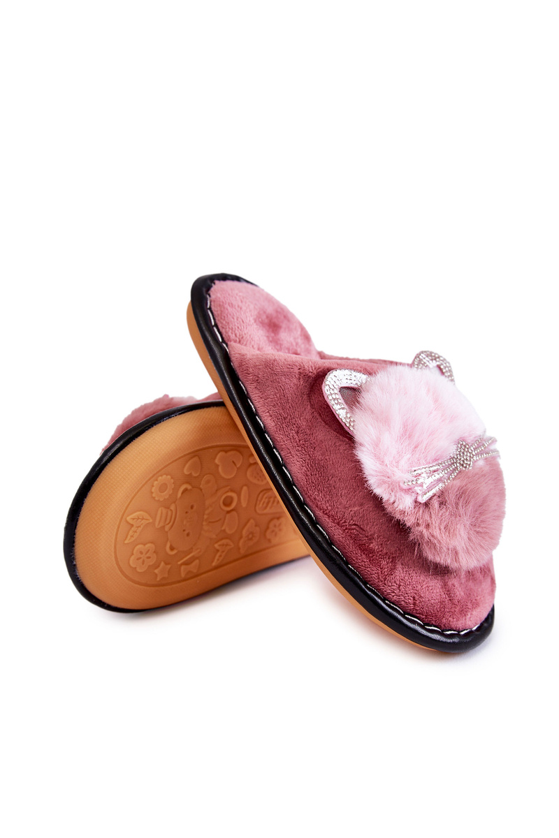 Dětské pantofle s koťátkem a kamínky Tmavě růžová Carliss