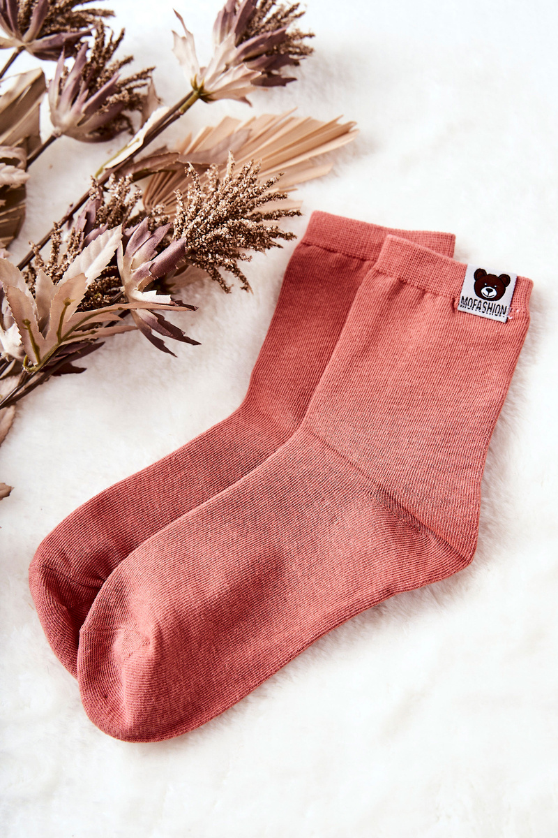 Dětské ponožky jsou vyrobeny převážně z bavlny. V horní části mají jemné žebrování a všitý materiál s motivem medvídka. K dispozici je několik velikostí a barev.