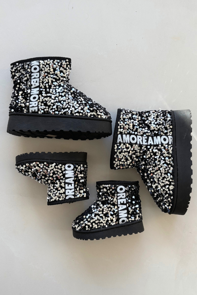 Dětské sněhule boty zateplené s flitry Černo-stříbrné ERebbica
