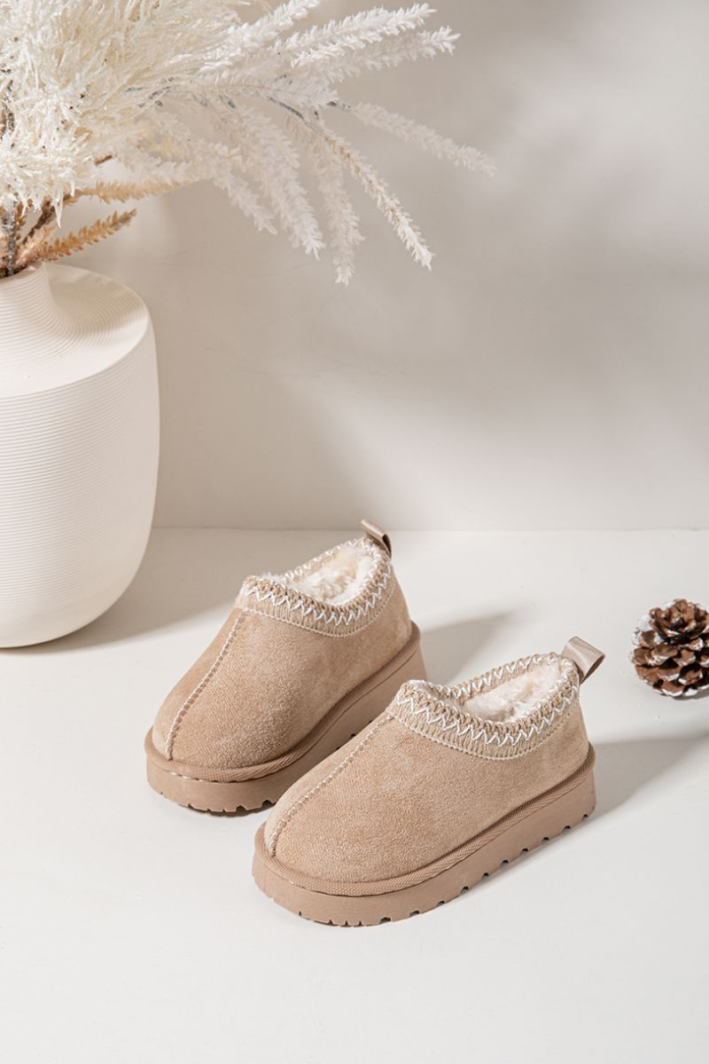 Dětské sněhule jsou praktická a stylová zimní obuv, která zajistí dětem pohodlí a ochranu v chladných dnech. Model se vyznačuje jemným ozdobným výšivkou umístěnou na horní části obuvi, díky čemuž vypadá roztomile a moderně, ideálně zapadá do dětských stylizací. Obuv je osazena na gumové podrážce, která zaručuje vynikající přilnavost k povrchu a stabilitu při chůzi nebo hraní na sněhu. Vnitřek je vyhříván měkkým kožíškem, který příjemně obklopuje nohy, zajišťuje teplo a pohodlí i v mrazivých dnech. Jedná se o funkční a pohodlnou zimní obuv, která kombinuje praktická řešení s módním vzhledem, takže dítě si může užívat zimní aktivity plně bezpečně a komfortně. Při výběru velikosti prosíme řídit se tabulkou velikostí. Při výběru velikosti se řiďte tabulkou velikostí.