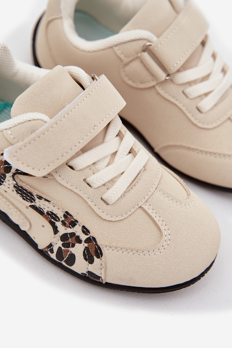Dětské sportovní boty na suchý zip béžové s leopardem Perrin