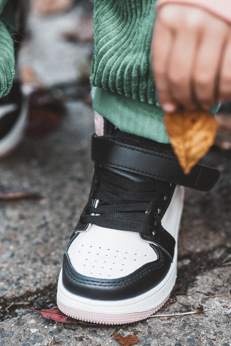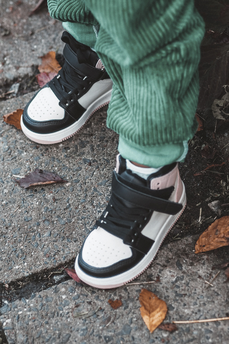 Dětské sportovní boty vyrobené z eko kůže. Připevněno na plošině z umělého materiálu. Upevněné na suchý zip a navíc mají gumové popruhy, které imitují šňůrky. Model s vyšší krajkou. Tyto tenisky určitě potěší vaše dítě! Při výběru velikosti se řiďte tabulkou velikostí.