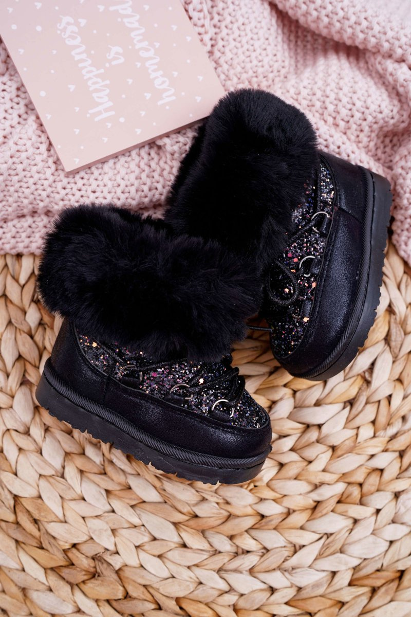 Dětské Teplé Kotníkové Boty S Kožešinou černé Nicola