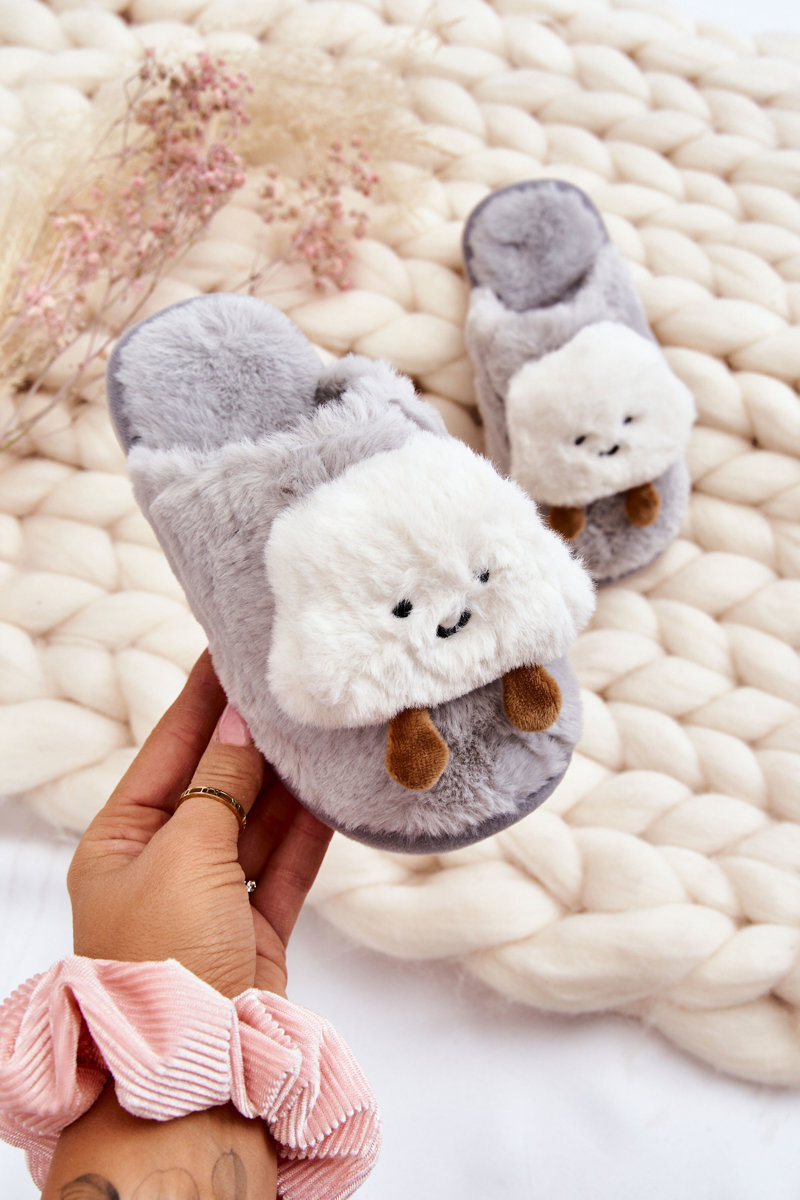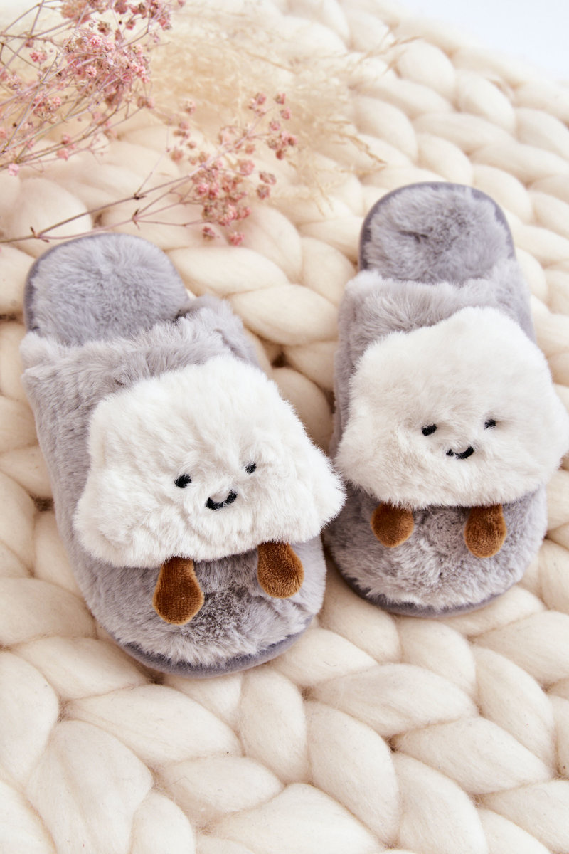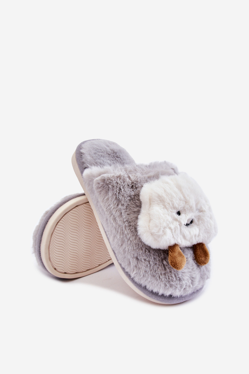 Dětské teplé pantofle s kožešinou Šedá Rubee