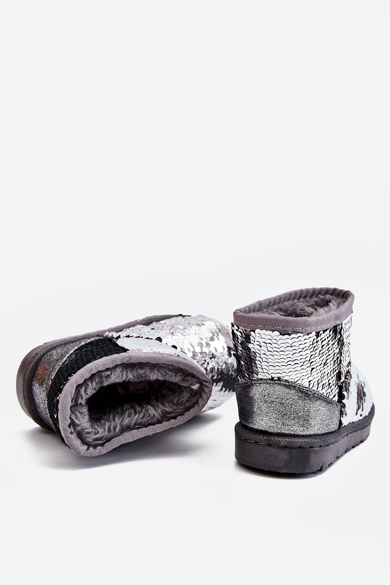 Dětské Teplé Sněhové Boty S Flitry Stříbrnou Shard