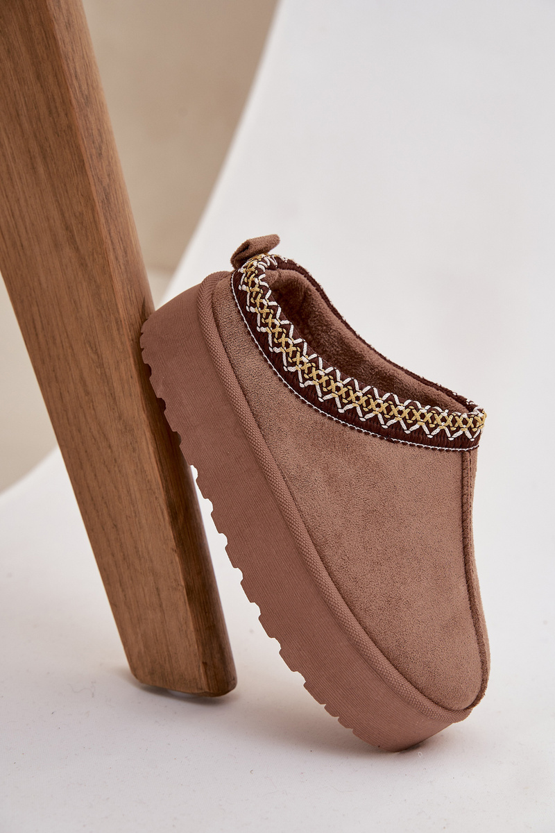 Dětské zimní boty pro mládež s výšivkou na platformě Khaki Jolisse