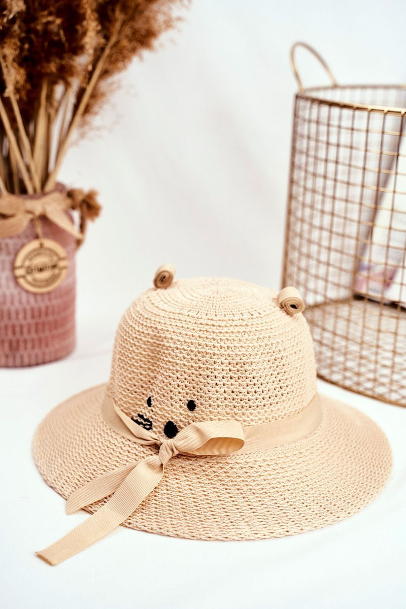 Lehká a módní dětská čepice ze 100% polyesteru. Okraj je zdoben béžovou stuhou. Klobouk má gumičku, která jej podstrčí pod bradu. Nezapomeňte se podívat na celou naši kolekci klobouků!