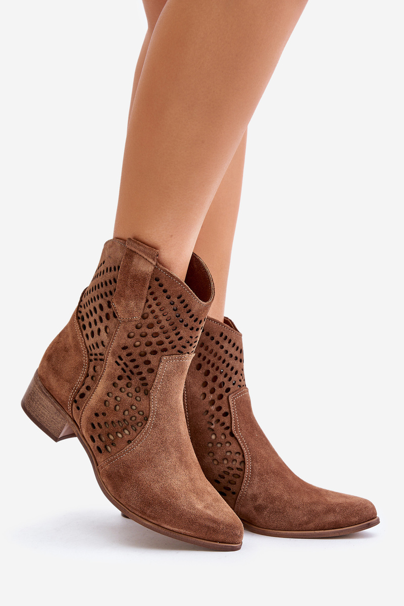 Dírové botky na plochém podpatku z hladké kůže hnědé Lewski 3305/2