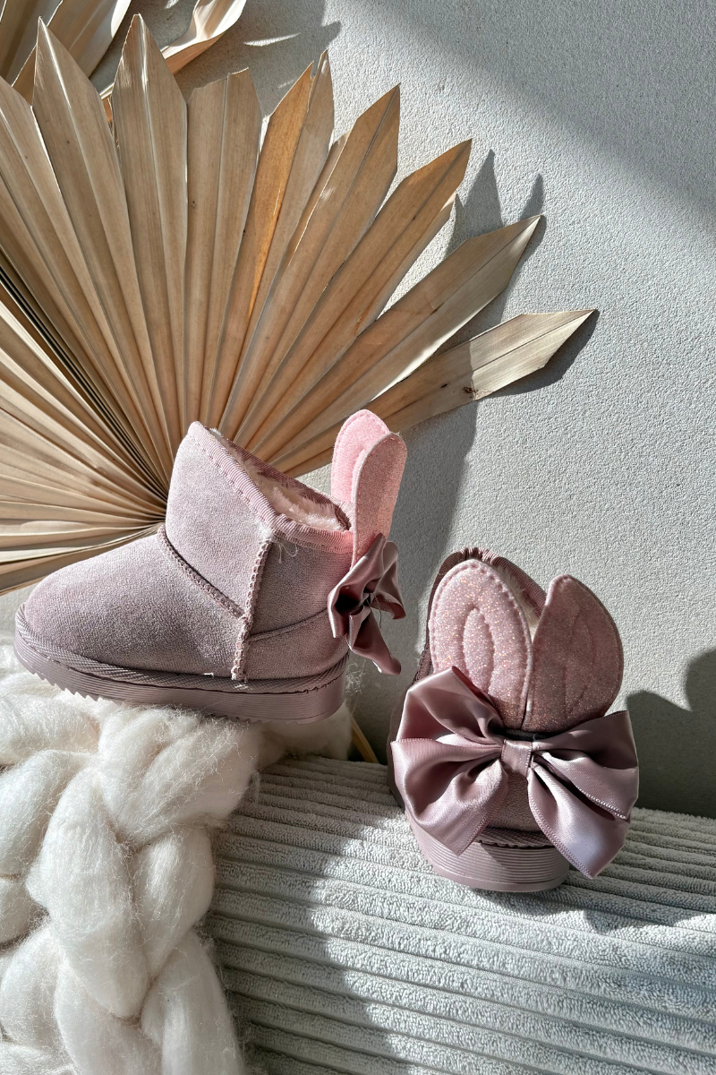 Dívčí zateplené sněhule s mašličkami Špinavá růžová Meriva
