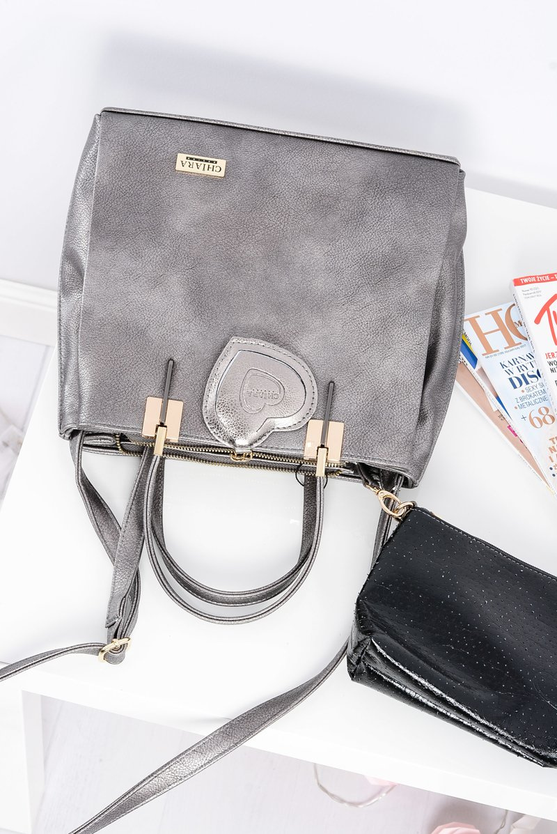 Duża Srebrna Torebka Damska + Saszetka + Lustereczko POLSKA