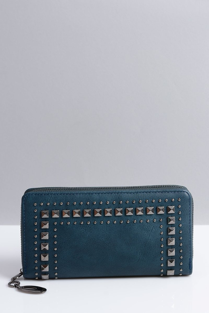 Przedstawiamy piękne portfele dla eleganckich Pań. Produkty te charakteryzuje wyjątkowy szyk wzorowany z włoskich salonów mody. Wykonywane są przy użyciu tylko najwyższej klasy materiałów, które podkreślają światowy i wielkomiejski styl. Staranne i piękne wykończenie każdego portfela ozdobnymi ćwiekami oddaje niesamowitą dbałość o detale oraz modowy gust. Portfel posiada zapinanie na zamek, trzy duże kieszonki, jedną małą zapinaną na zamek oraz 8 przegródek na karty.