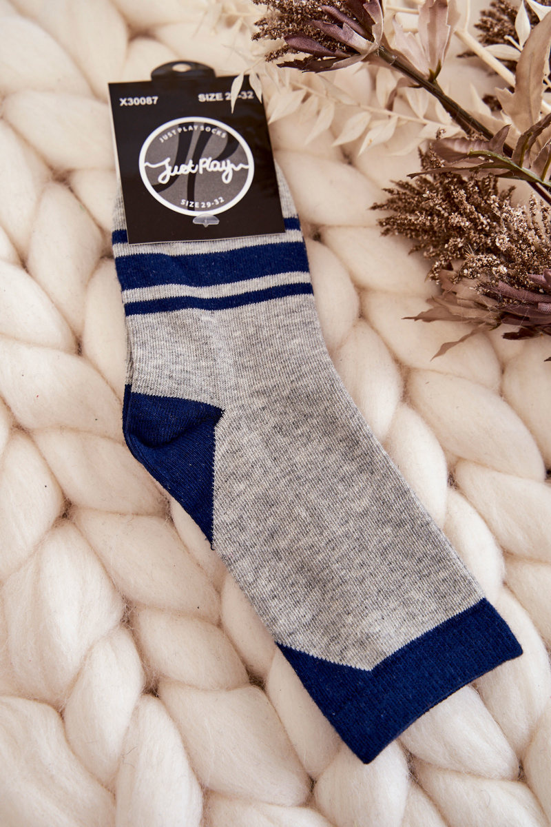 Dvoubarevné ponožky pro mládež s pruhy Šedo-námořnická modrá