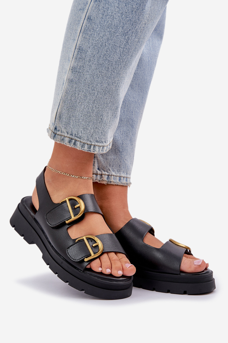 Eko Kožené Sandály S Přezkami Černé Vulinea