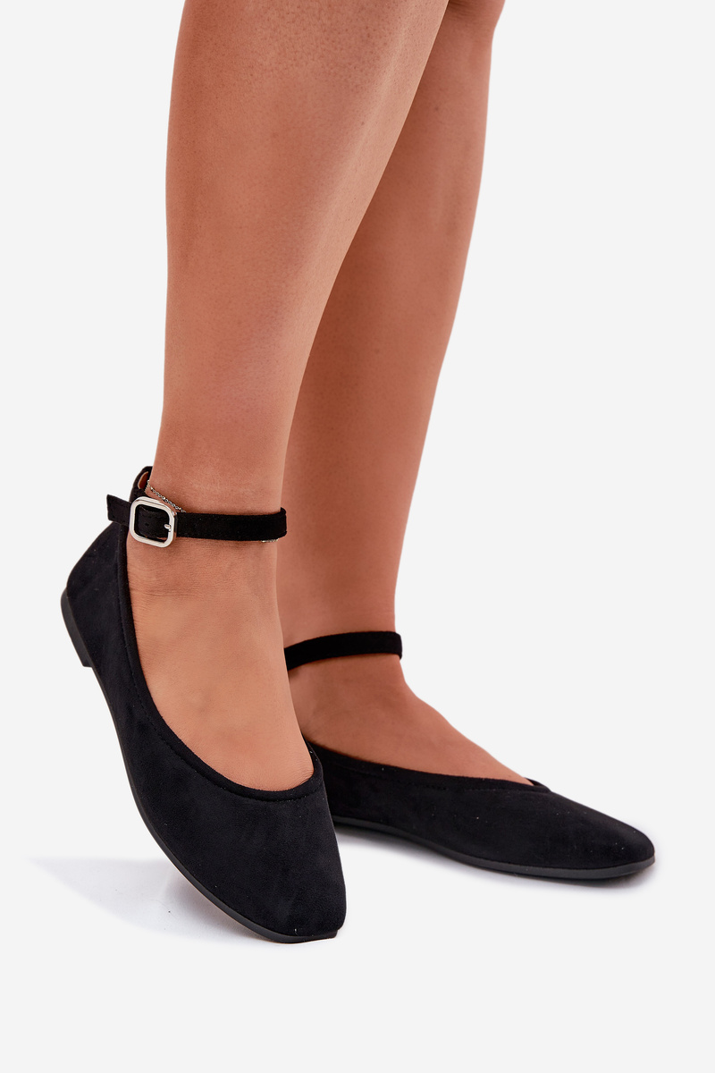 Eko Semišové Baletky S Páskem A Sponou Černé Deomira