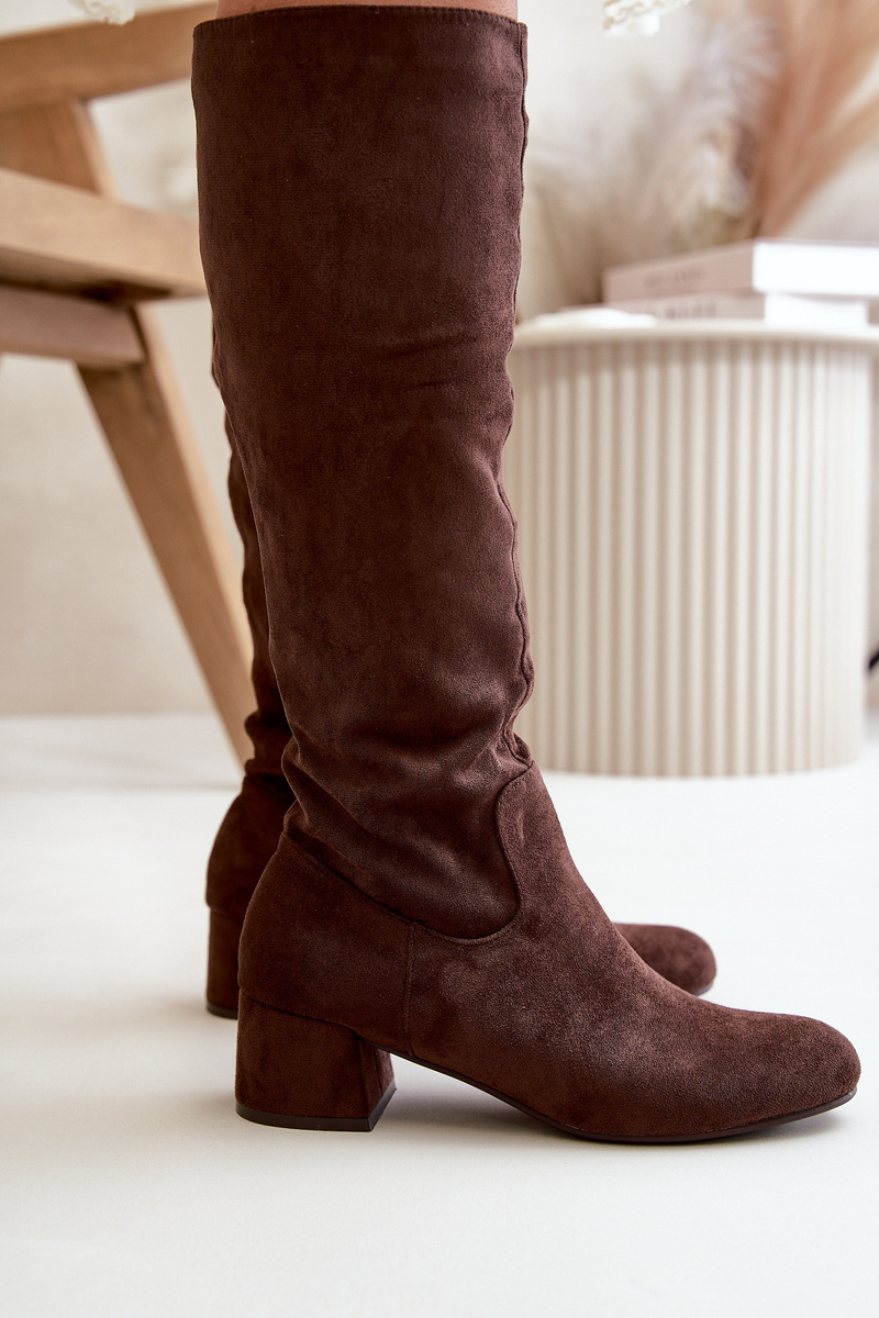 Eko semišové dámské kozačky nad kolena na zip hnědé Elitara