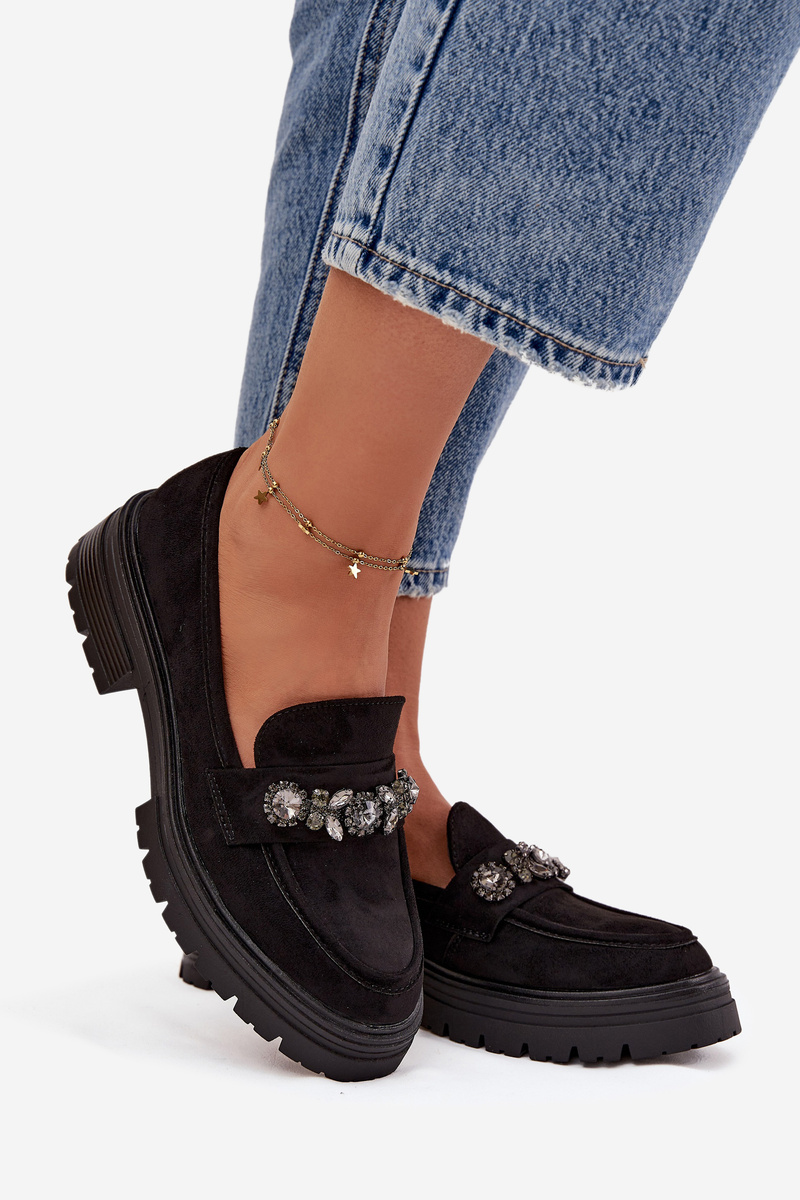 Eko Semišové Mokasíny Dámské S Dekorativní Broží Černé Valiana