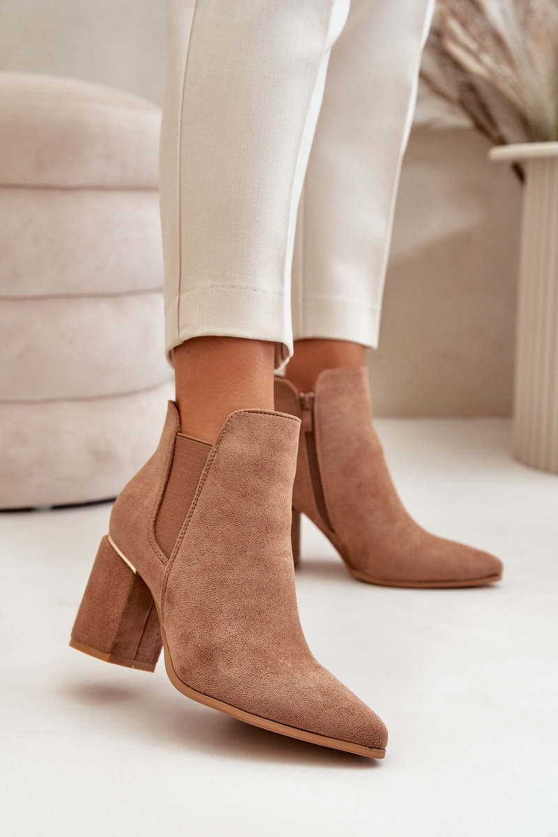 Dámské botky vyrobené z příjemného eko semiše. Usazené na podpatku ve tvaru sloupku. Zip umístěný na boku svršku usnadňuje obouvání, zatímco zpevněný opatek dodává botám trvanlivost a podporu. Vnitřek je zateplen obuvnickou vlnou. Špičky ve špičatém tvaru opticky prodlužují nohy. Určitě se podívejte i na další modely bot dostupné v naší nabídce. Při výběru velikosti se řiďte tabulkou velikostí.