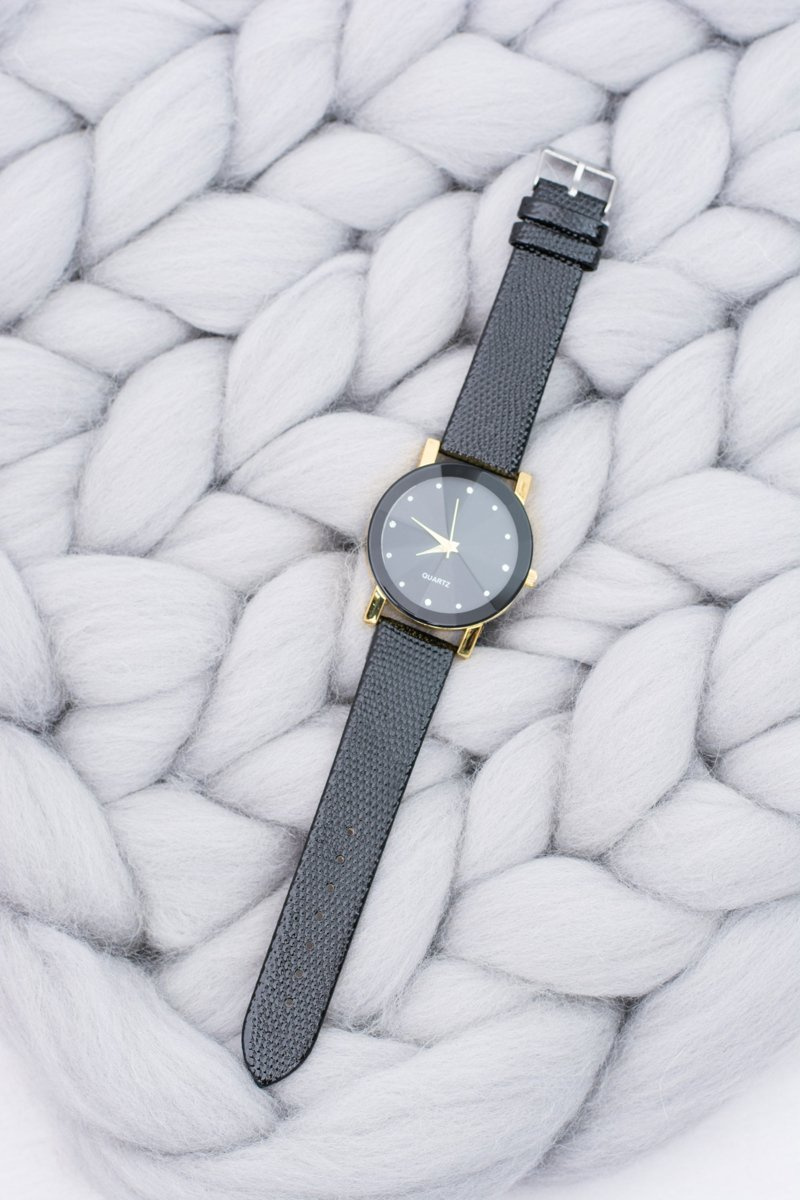 Elegant Ladies Black and Gold Watch on Belt