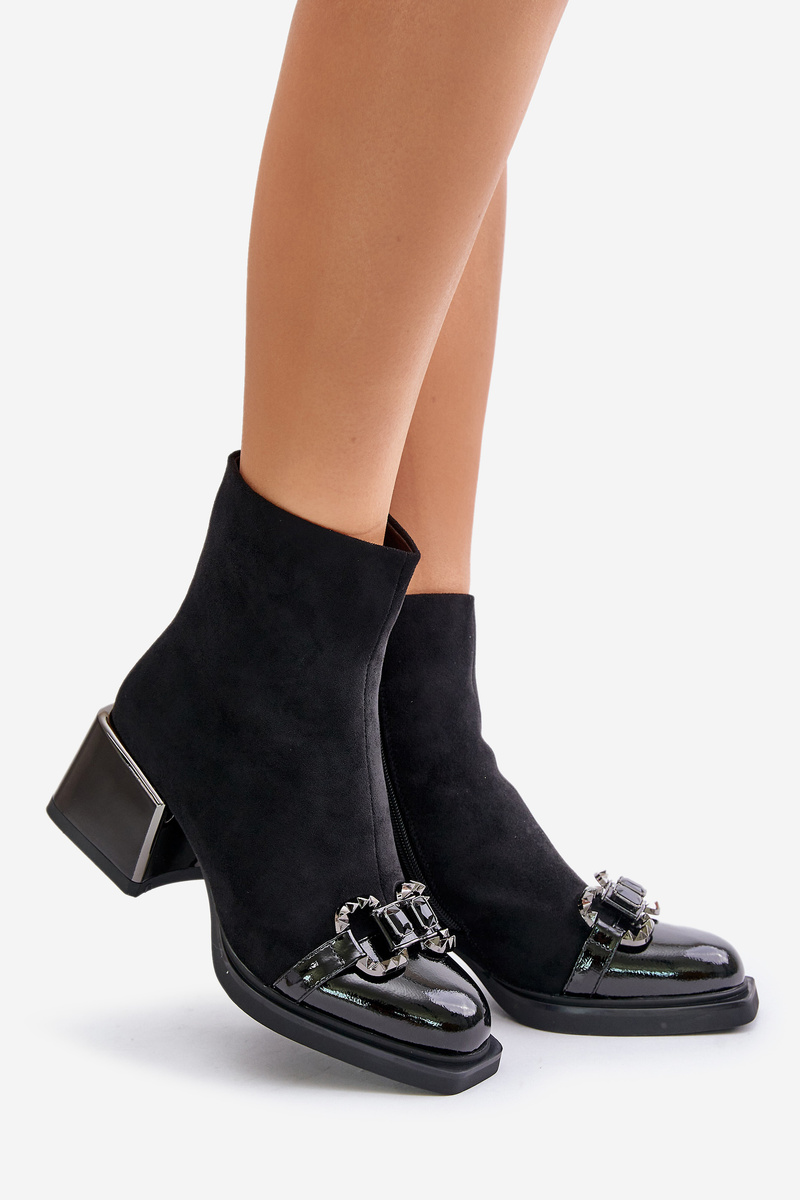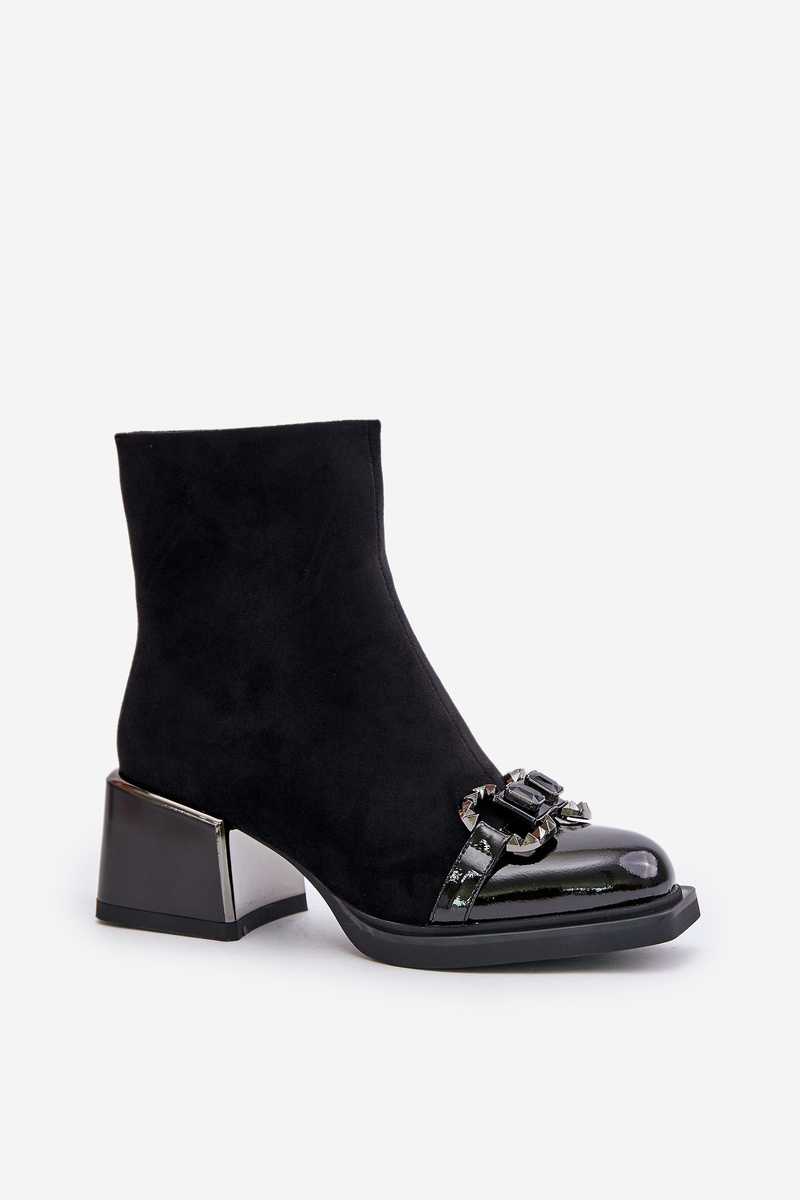 Elegantní dámské boty na podpatku s ozdobou černé MR880-127