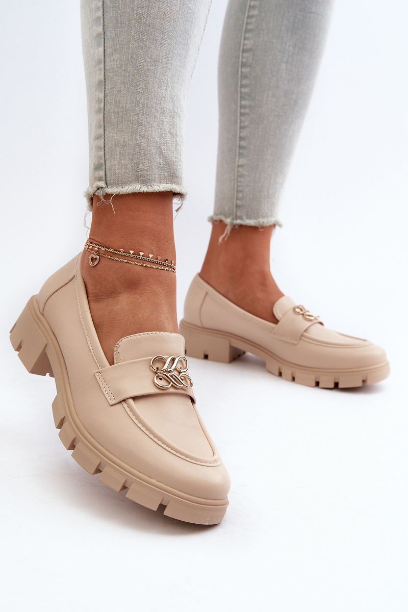 Elegantní dámské mokasíny s zlatým ozdobou béžové Tosisa