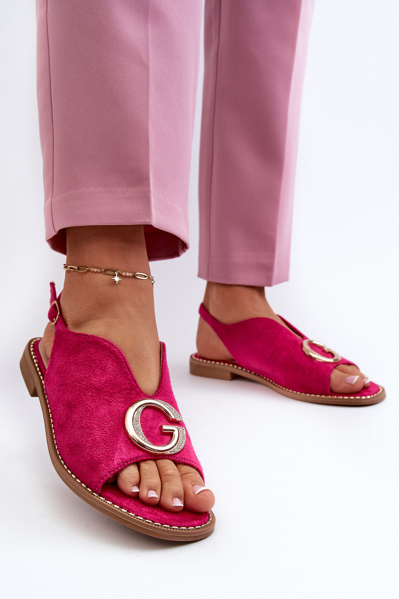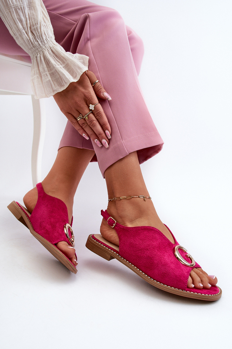 Elegantní dámské sandály s ozdobou z ekosuede S.Barski KV27-058 Fuksie