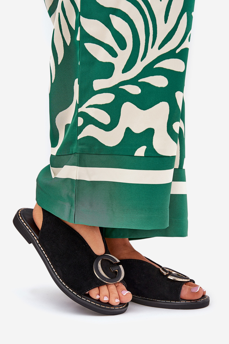 Elegantní Dámské Sandály S Zlatou Ozdobou Na Plochém Podpatku Černé S.Barski KV27-053