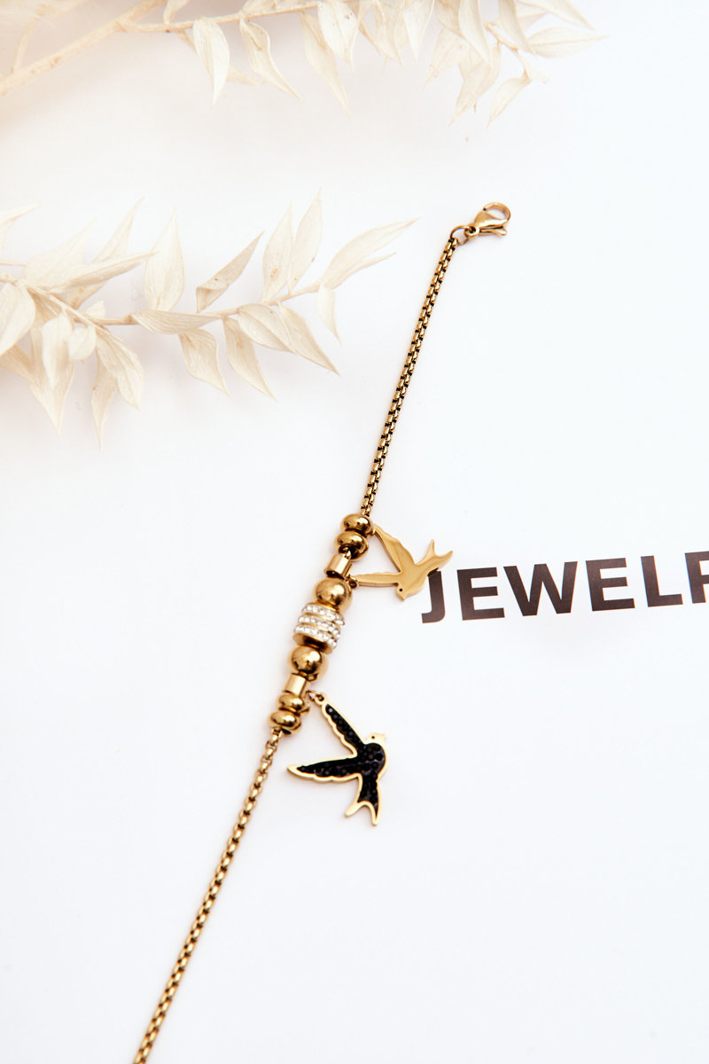 Jedinečný a elegantní dámský náramek vyrobený z nerezové oceli. Má možnost nastavení délky. Náramek s jemnou vazbou s masivnějšími ozdobami v podobě vlaštovek a zirkonů. Působí mimořádně elegantně. Můžete jej nosit jako doplněk k mnoha stylům. Určitě se podívejte také na naši další nabídku dostupných modelů šperků. Skvělý model, ten musíte mít!