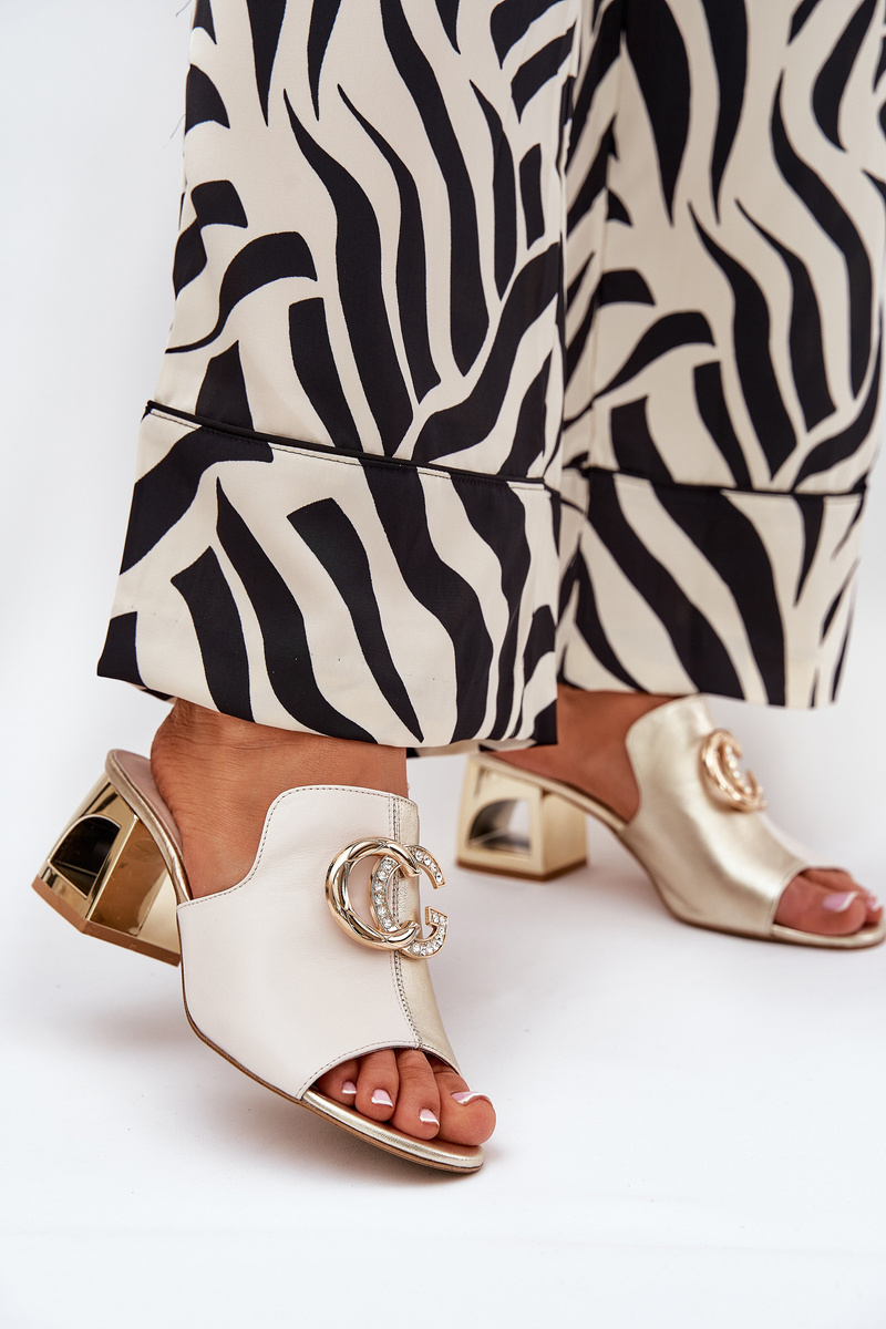 Elegantní Kožené Pantofle Na Podpatku Béžovo-Zlaté Laura Messi 2875