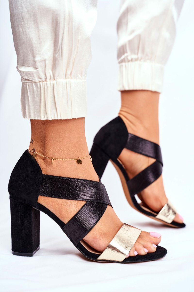 Elegantní Nazouvací Sandály Na Podpatku černé-Zlaté Varina