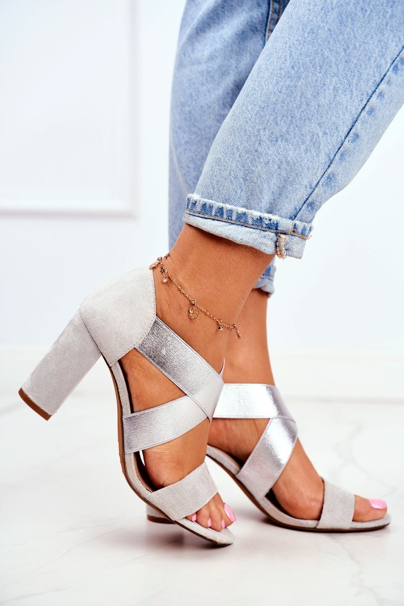 Unikátní a elegantní sandály na sloupku. Měkká stélka a elastická guma zajišťují pohodlí. Boty jsou vyrobeny z ekologického semiše. Nezapomeňte se podívat na celou naši kolekci dámských sandálů! Při výběru velikosti použijte tabulku velikostí.