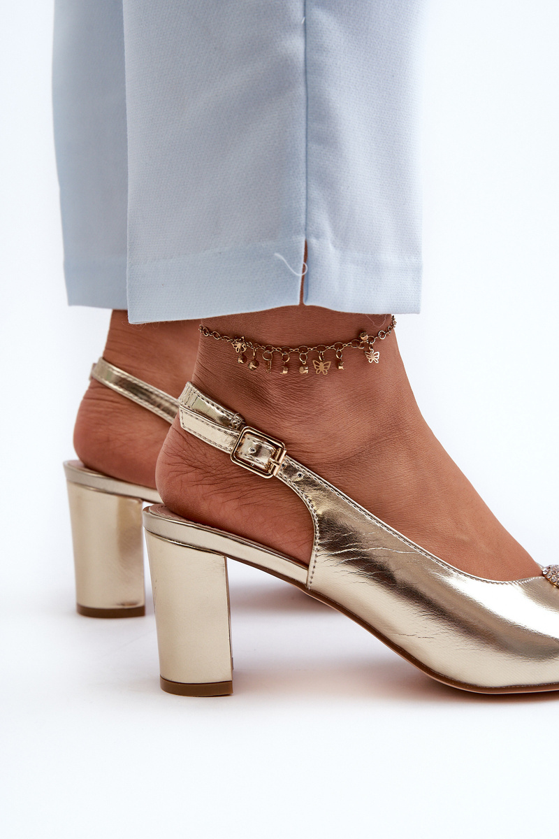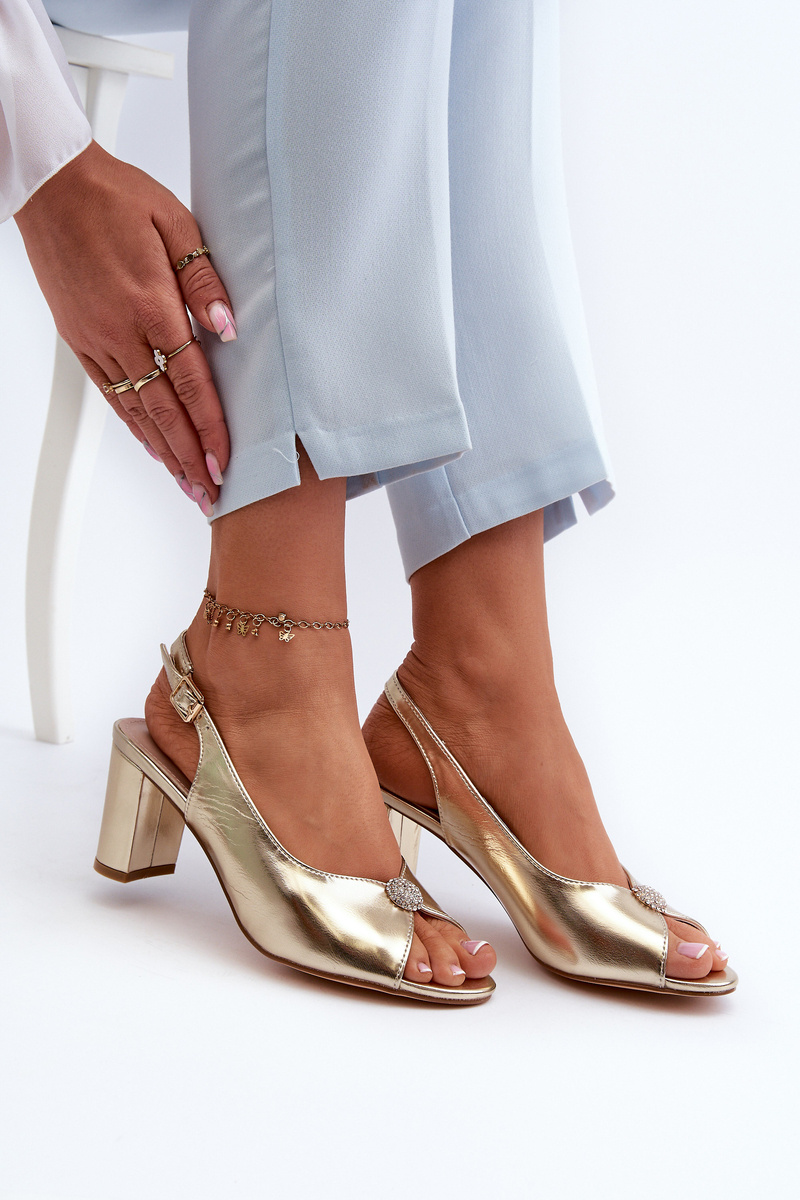 Elegantní sandály na podpatku s ozdobou Zlaté Trasea