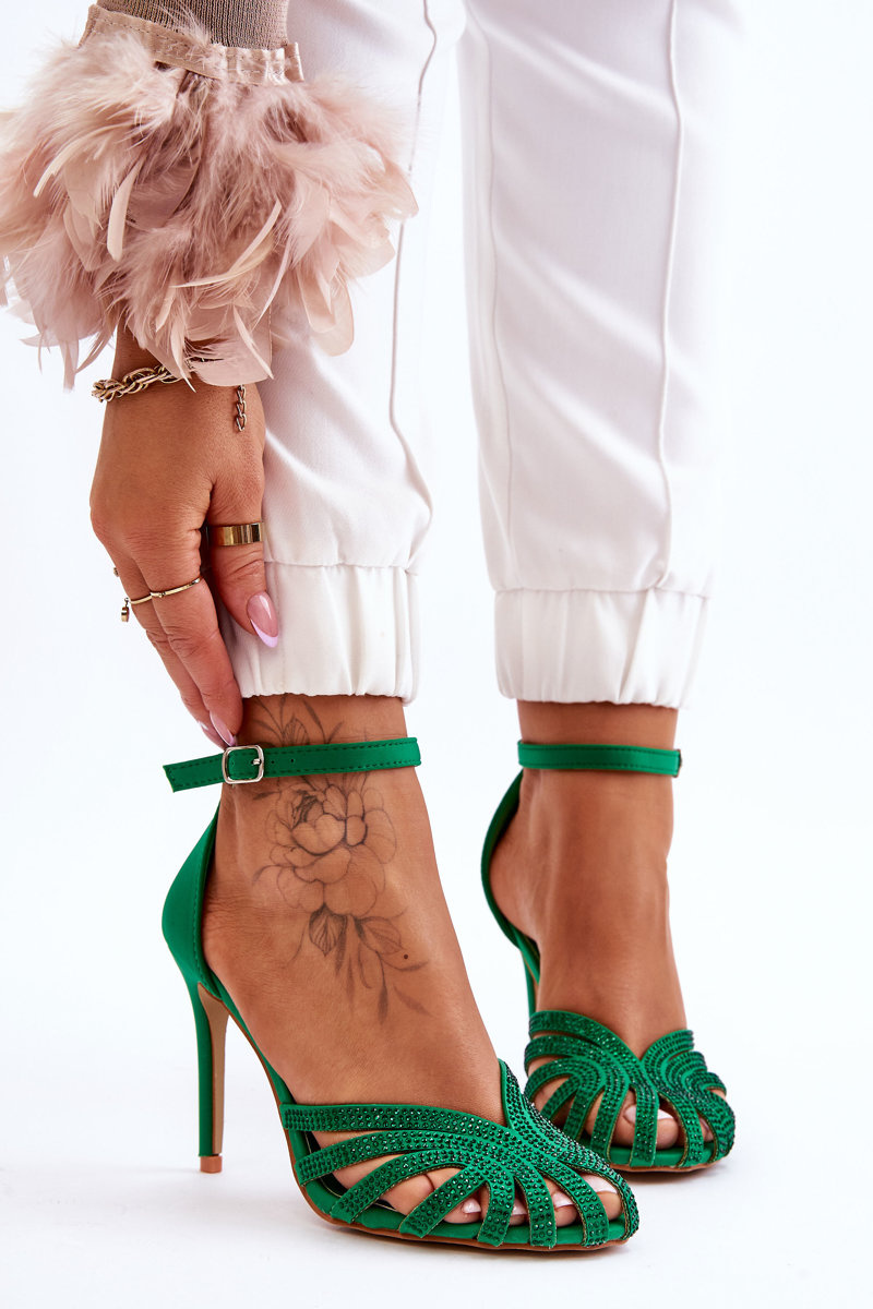 Fashion Vysoké podpatky s kamínky Zelená Jaylen