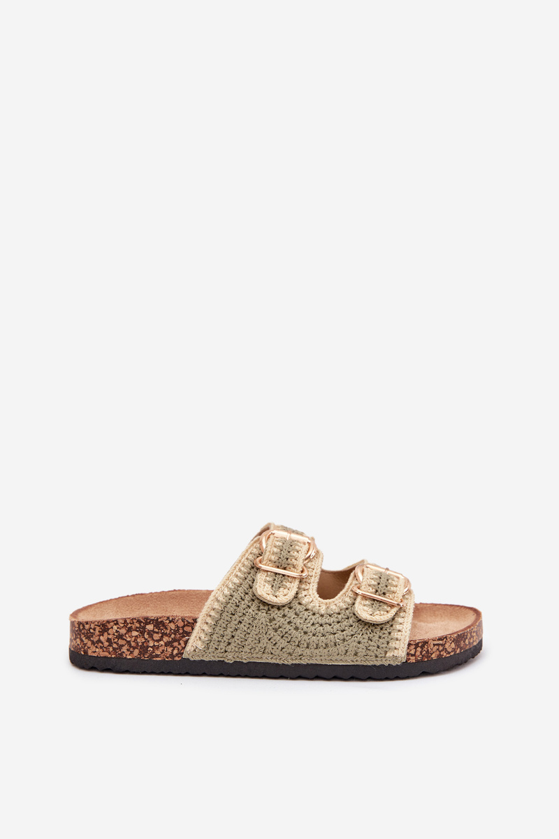Dámské háčkované pantofle na korkové platformě jsou výjimečným návrhem na teplé dny. Díky profilované stélce z eko semiše zajišťují komfort a pohodlí po celý den. Dvě zlaté přezky jim dodávají elegantní charakter. Ideální pro letní stylizace, tyto pantofle budou skvělou volbou k šatům, sukním a kalhotám. Při výběru velikosti se řiďte tabulkou velikostí.