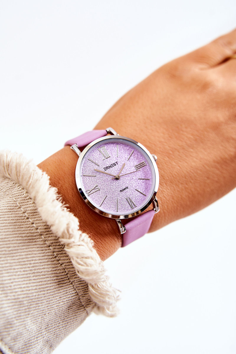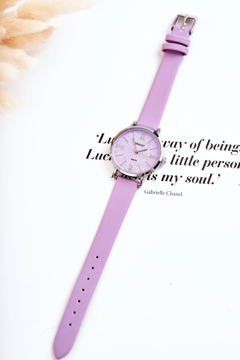 Hodinky Na Koženém řemínku Nickel Free ERNEST fialove