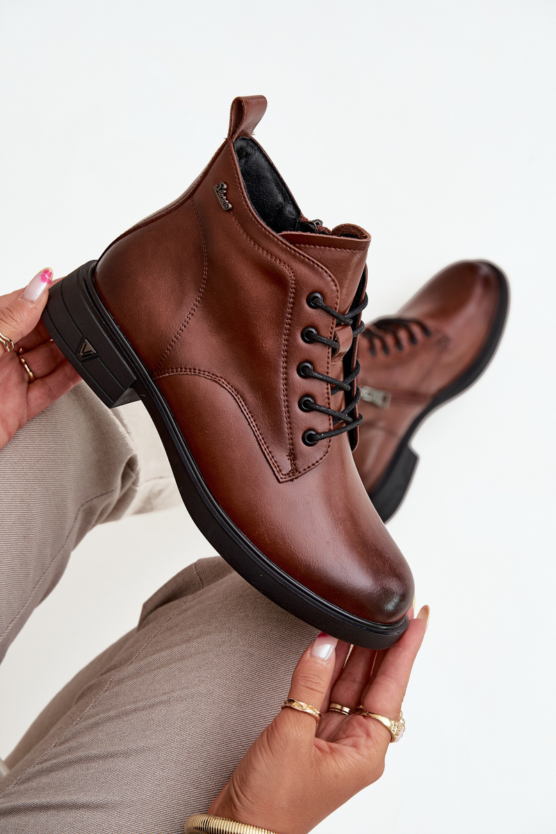 Izolované kožené dámské kotníkové boty na nízkém podpatku Vinceza 39953 hnědé