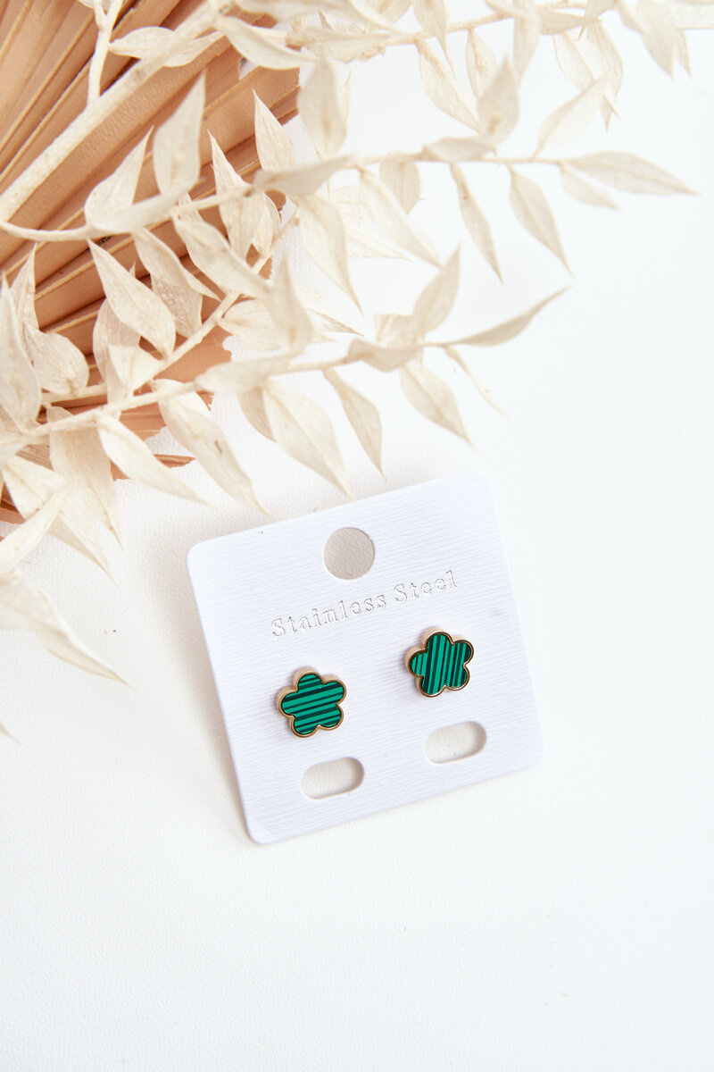 Jemné náušnice květiny Zelená a zlaté