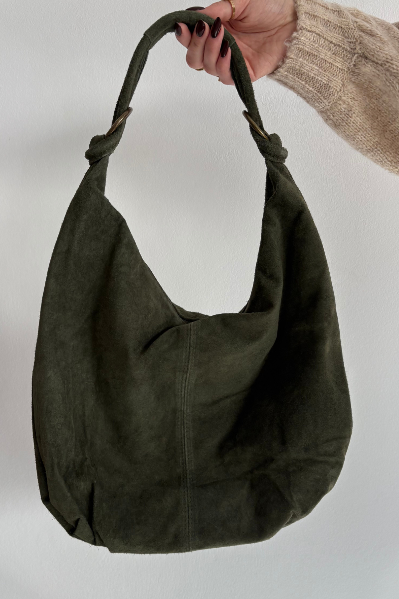 Kabelka Z Přírodního Semiše Tmavě Zelená Floriah