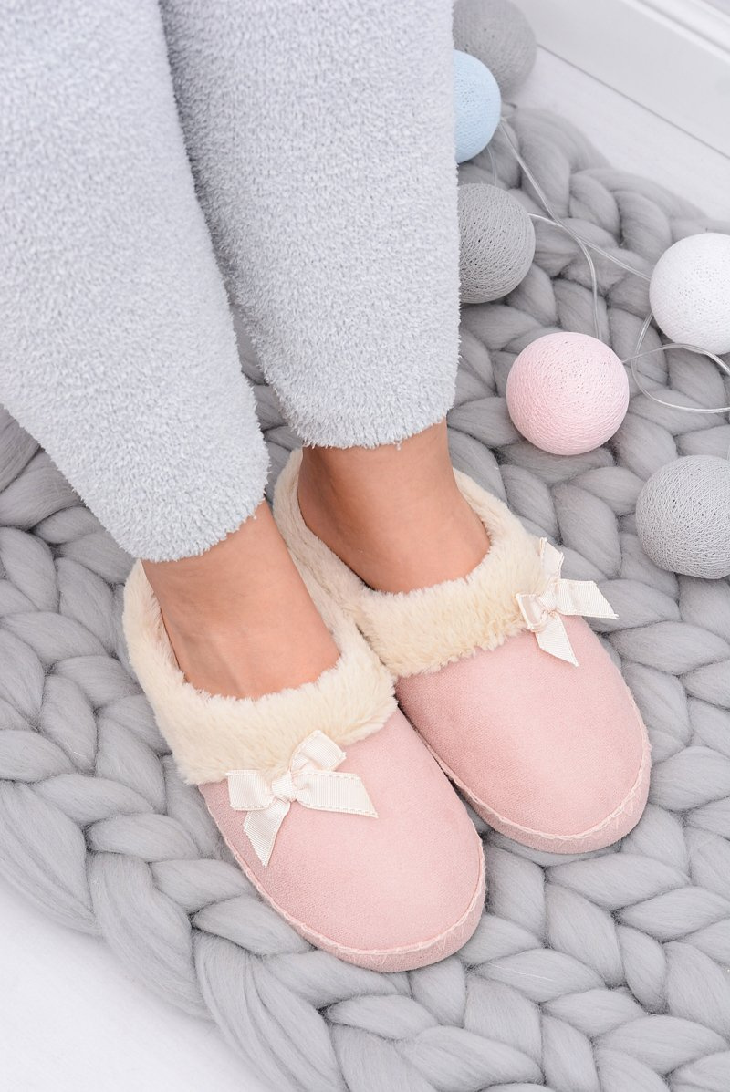 Klapki Damskie Z Futerkiem I Kokardką SOXO Różowe