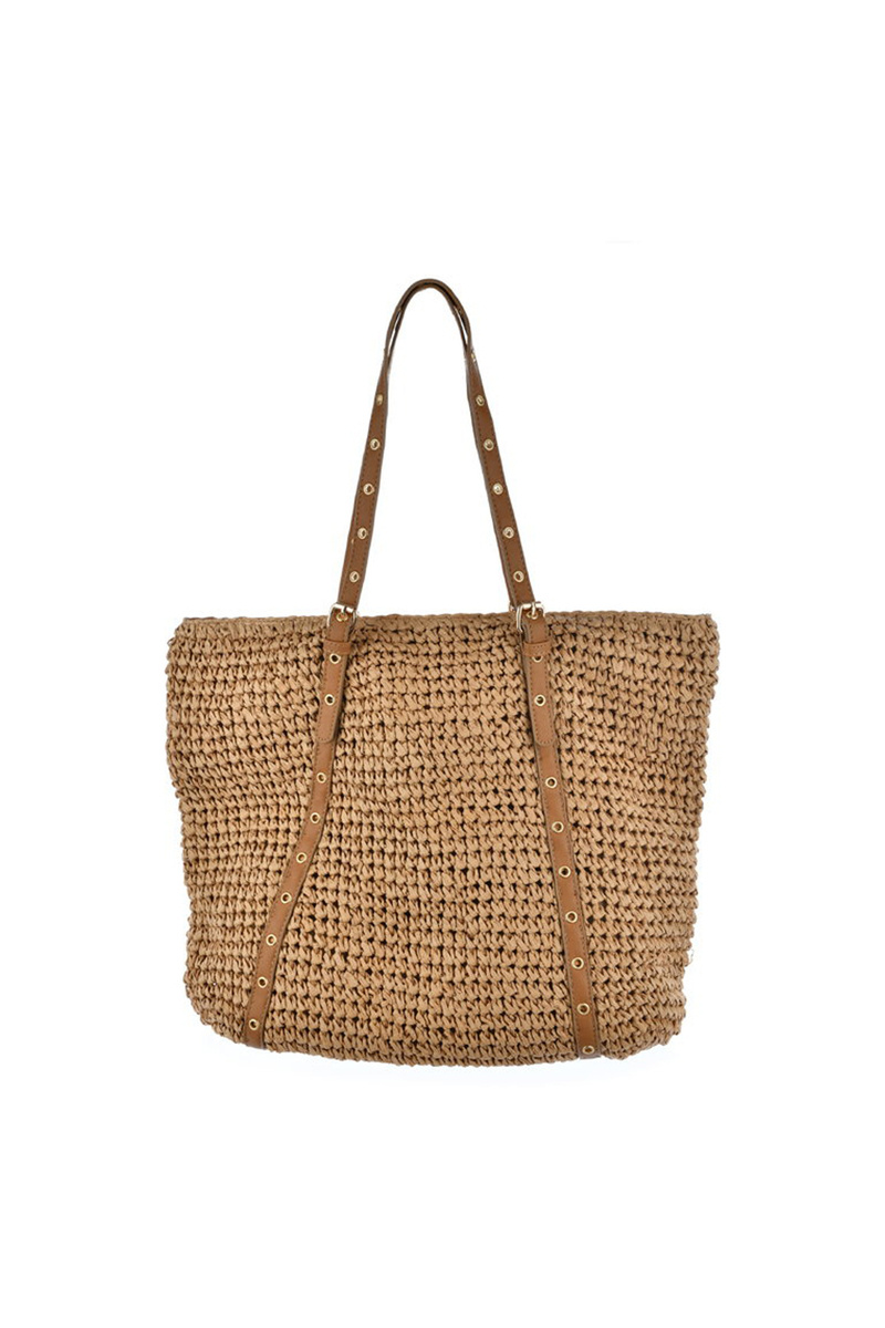 Klasická kabelka, do které se vejdou ty nejnutnější věci. Má jednu přihrádku uzavíratelnou na zip. Uvnitř je jedna kapsa na zip. Rukojeti jsou nastavitelné. Vyrobeno z plastu a eko kůže na horní straně. Kabelka má navíc ozdobné třásně.