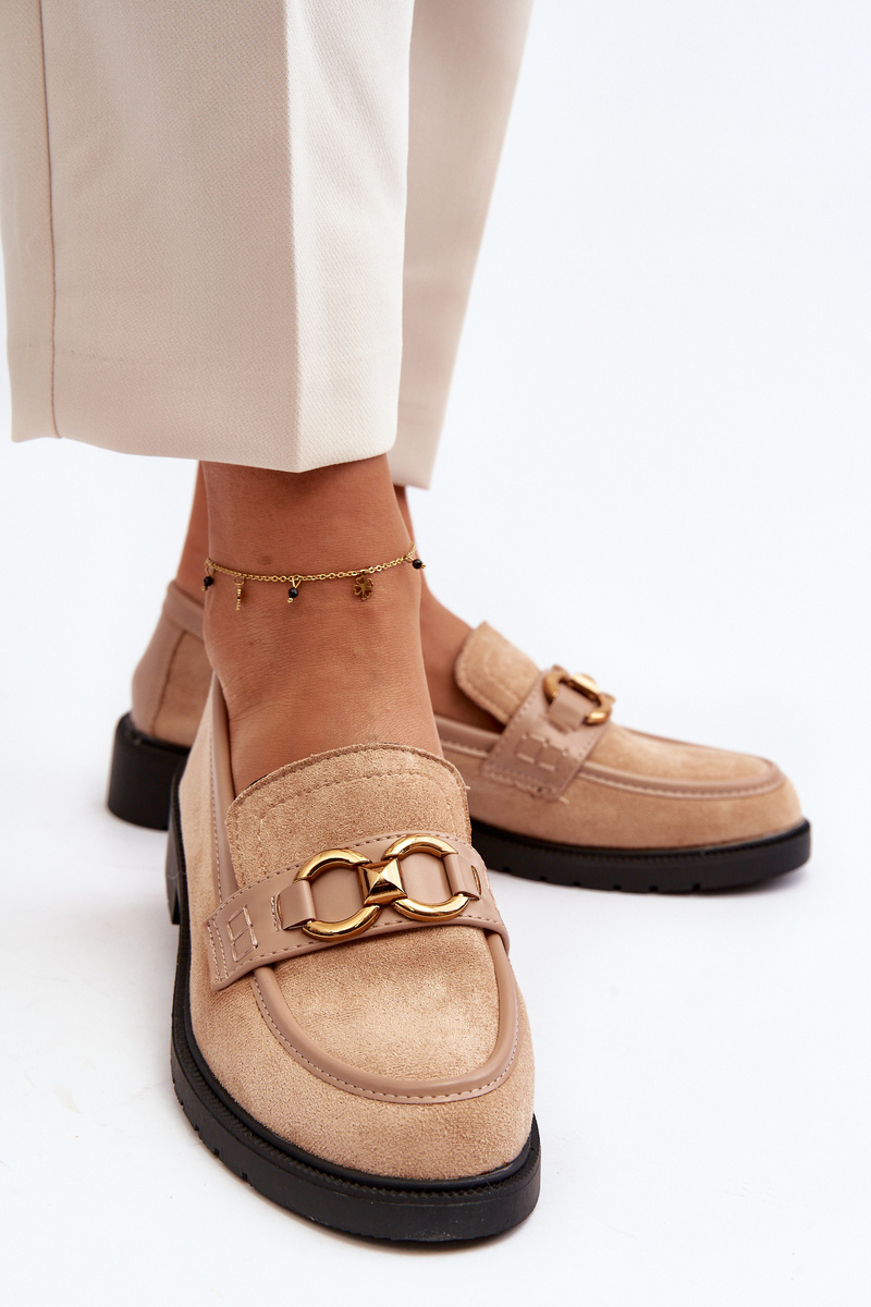 Klasické mokasíny vyrobené z ekologického semiše. Umístěné na plochém podpatku. Vepředu ozdoba. Vložka z ekologické kůže zajistí pohodlí během nošení. Ideální model pro mnoho jarně letních stylizací! Rozhodně by sis je měla pořídit! Při výběru velikosti se řiďte tabulkou velikostí.