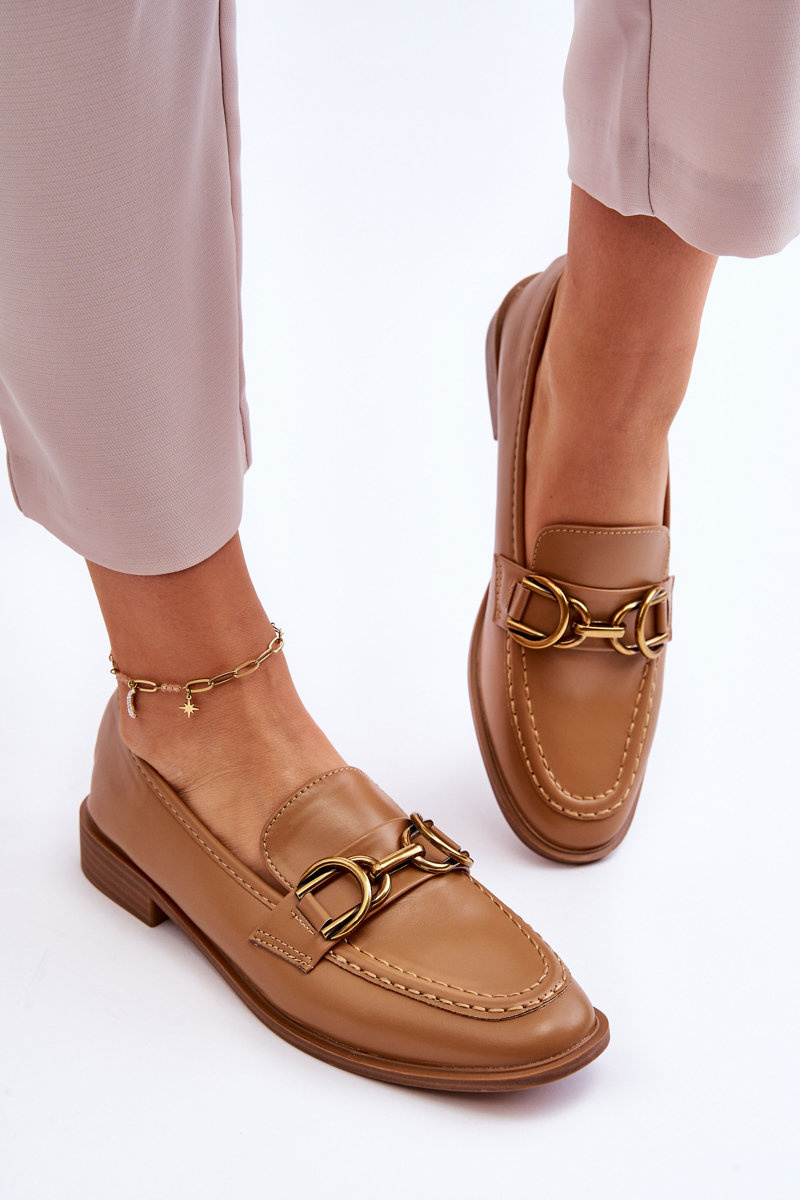 Klasické nazouvací dámské mokasíny jistě fungují v mnoha stylech! Toto je model, který by neměl chybět ve vašem šatníku! Mokasíny mají na přední straně ozdobný pruh. Tyto boty jsou vyrobeny z eko kůže. Jsou nasazeny na plochém podpatku, díky kterému se pohodlně používají. Při výběru velikosti se řiďte tabulkou velikostí.